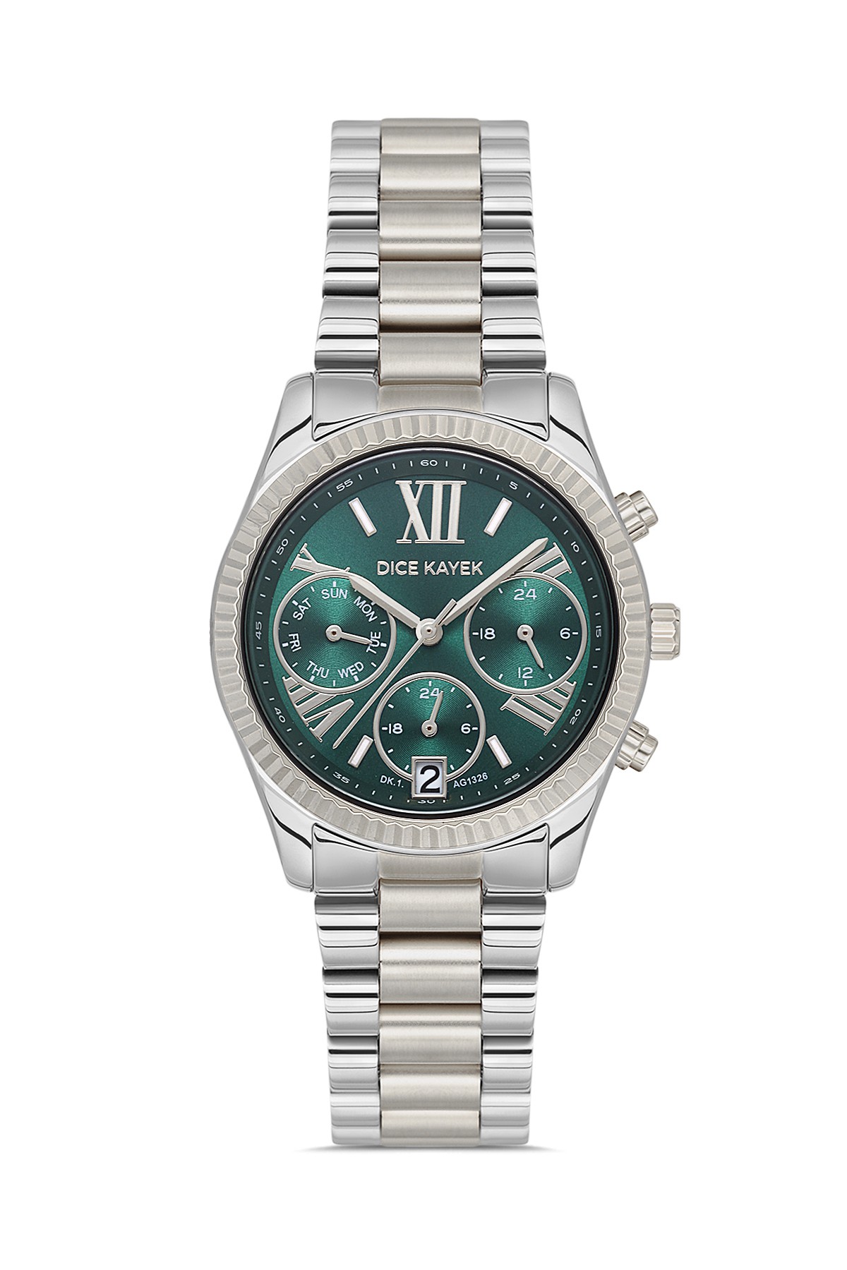 Kadın - Multi̇ Fonksi̇yon - Gümüş - Yeşi̇l - Paslanmaz Masi̇f Çeli̇k - 3 Atm - Sertleşti̇ri̇lmi̇ş Mi̇neral Cam - Dice Kayek - 33