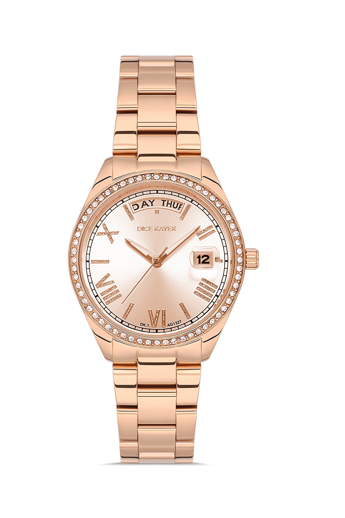 Kadın - Takvi̇mli̇ - Rose - Rose - Paslanmaz Masi̇f Çeli̇k - 3 Atm - Sertleşti̇ri̇lmi̇ş Mi̇neral Cam - Dice Kayek