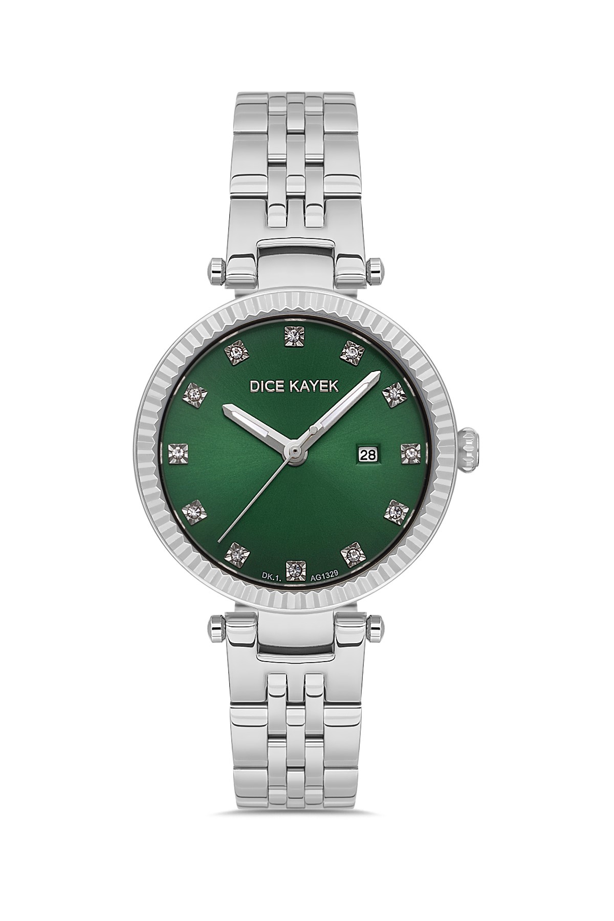 Kadın - Takvi̇mli̇ - Gümüş - Yeşi̇l - Paslanmaz Masi̇f Çeli̇k - 3 Atm - Sertleşti̇ri̇lmi̇ş Mi̇neral Cam - Dice Kayek - 31