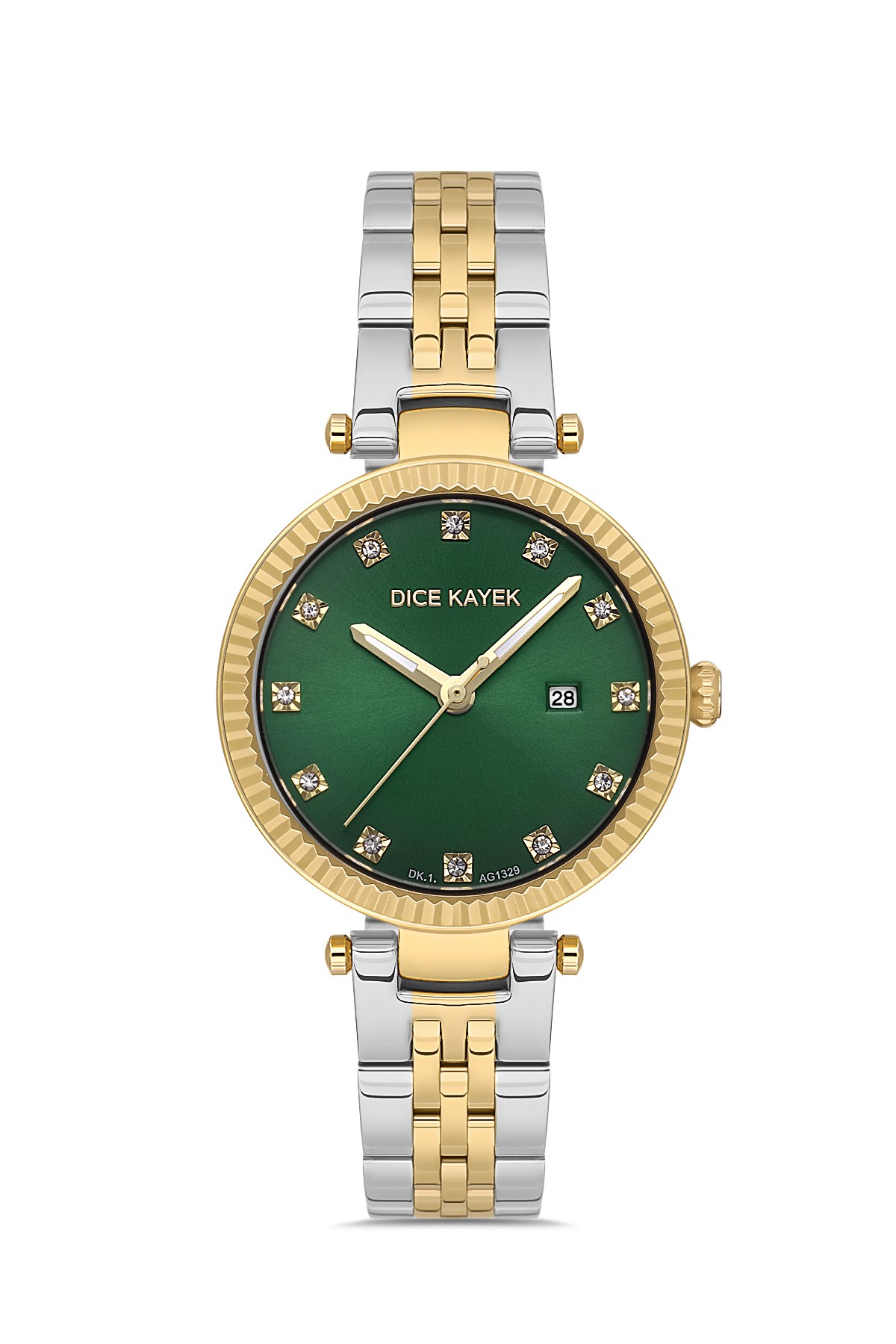 Kadın - Takvi̇mli̇ - Sari Beyaz - Yeşi̇l - Paslanmaz Masi̇f Çeli̇k - 3 Atm - Sertleşti̇ri̇lmi̇ş Mi̇neral Cam - Dice Kayek - 31
