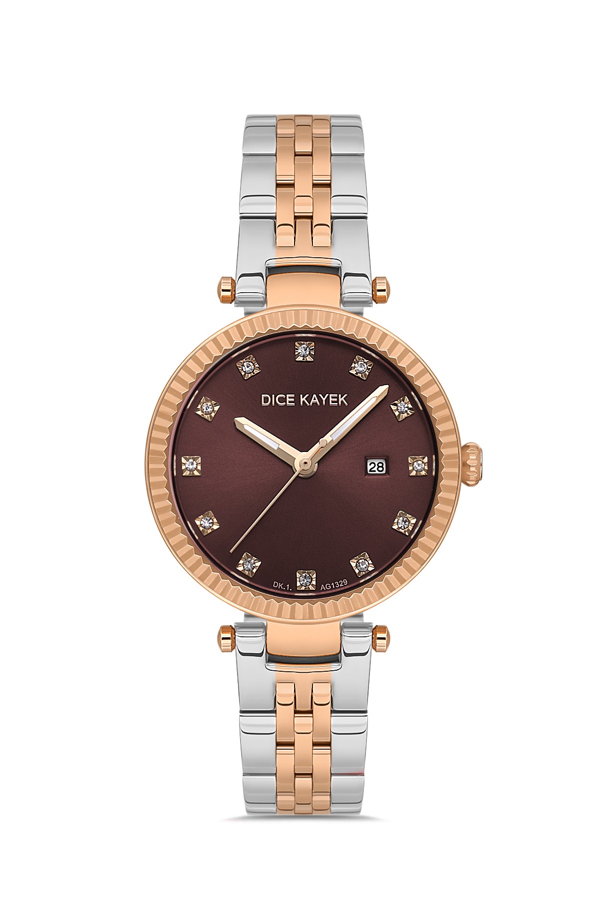 Kadın - Takvi̇mli̇ - Rose Beyaz - Kahverengi̇ - Paslanmaz Masi̇f Çeli̇k - 3 Atm - Sertleşti̇ri̇lmi̇ş Mi̇neral Cam - Dice Kayek - 31