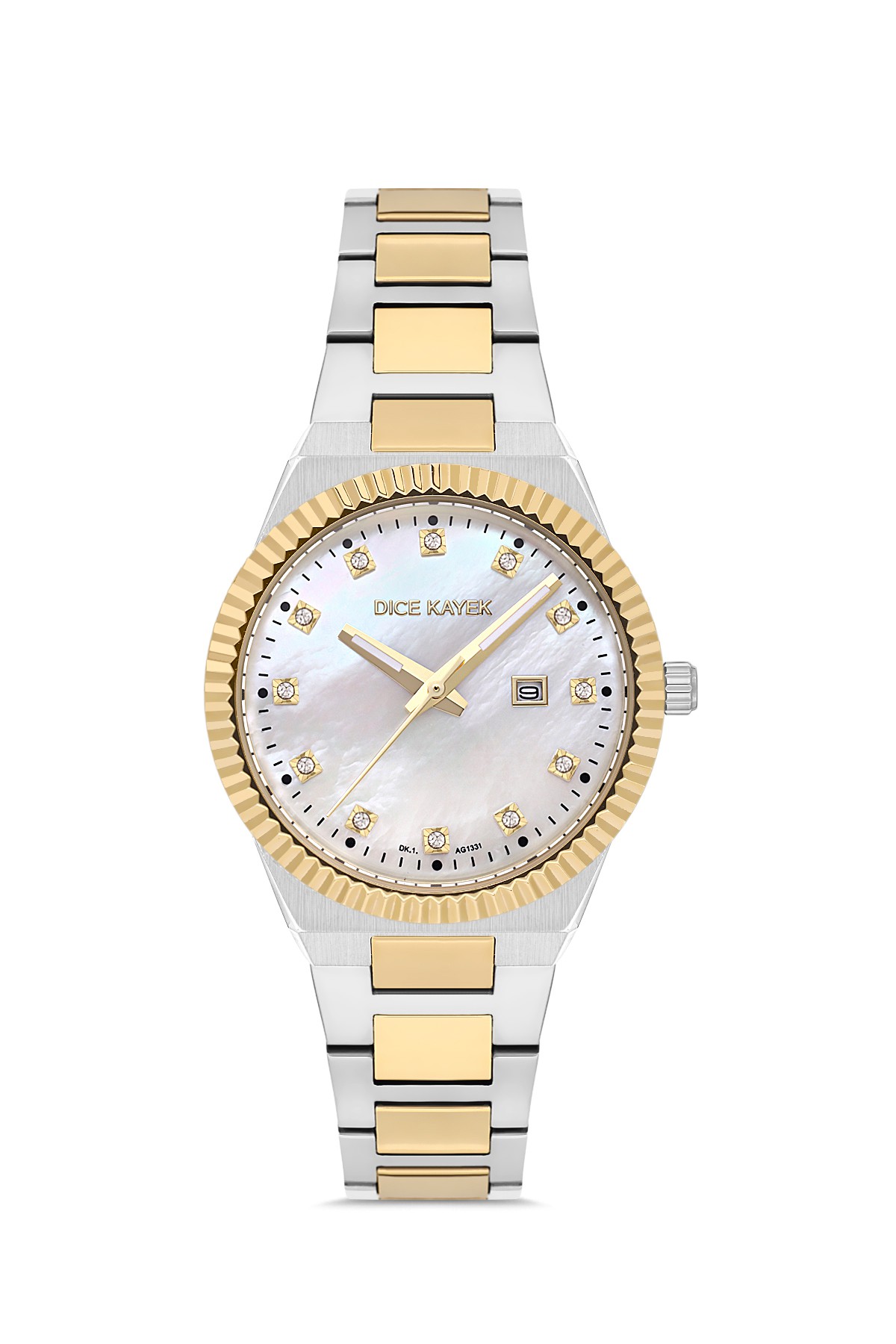Kadın - Takvi̇mli̇ - Sari Beyaz - Gümüş - Paslanmaz Masi̇f Çeli̇k - 3 Atm - Sertleşti̇ri̇lmi̇ş Mi̇neral Cam - Dice Kayek - 33
