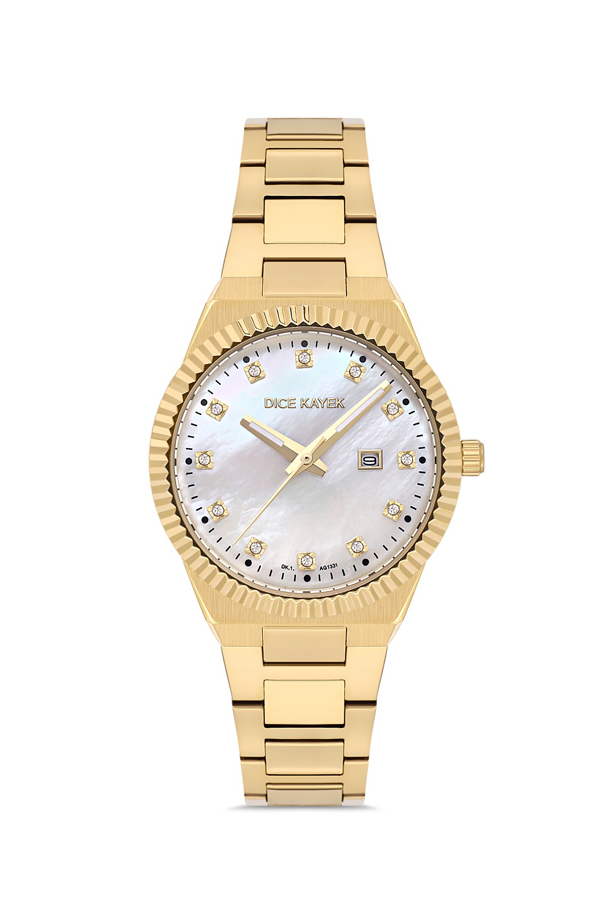 Kadın - Takvi̇mli̇ - Sari - Gümüş - Paslanmaz Masi̇f Çeli̇k - 3 Atm - Sertleşti̇ri̇lmi̇ş Mi̇neral Cam - Dice Kayek - 33