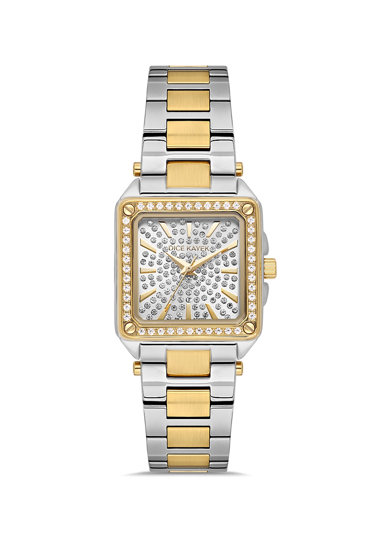 Kadın - Taşli - Sari Beyaz - Gümüş - Paslanmaz Masi̇f Çeli̇k - 3 Atm - Sertleşti̇ri̇lmi̇ş Mi̇neral Cam - Dice Kayek - 27*27