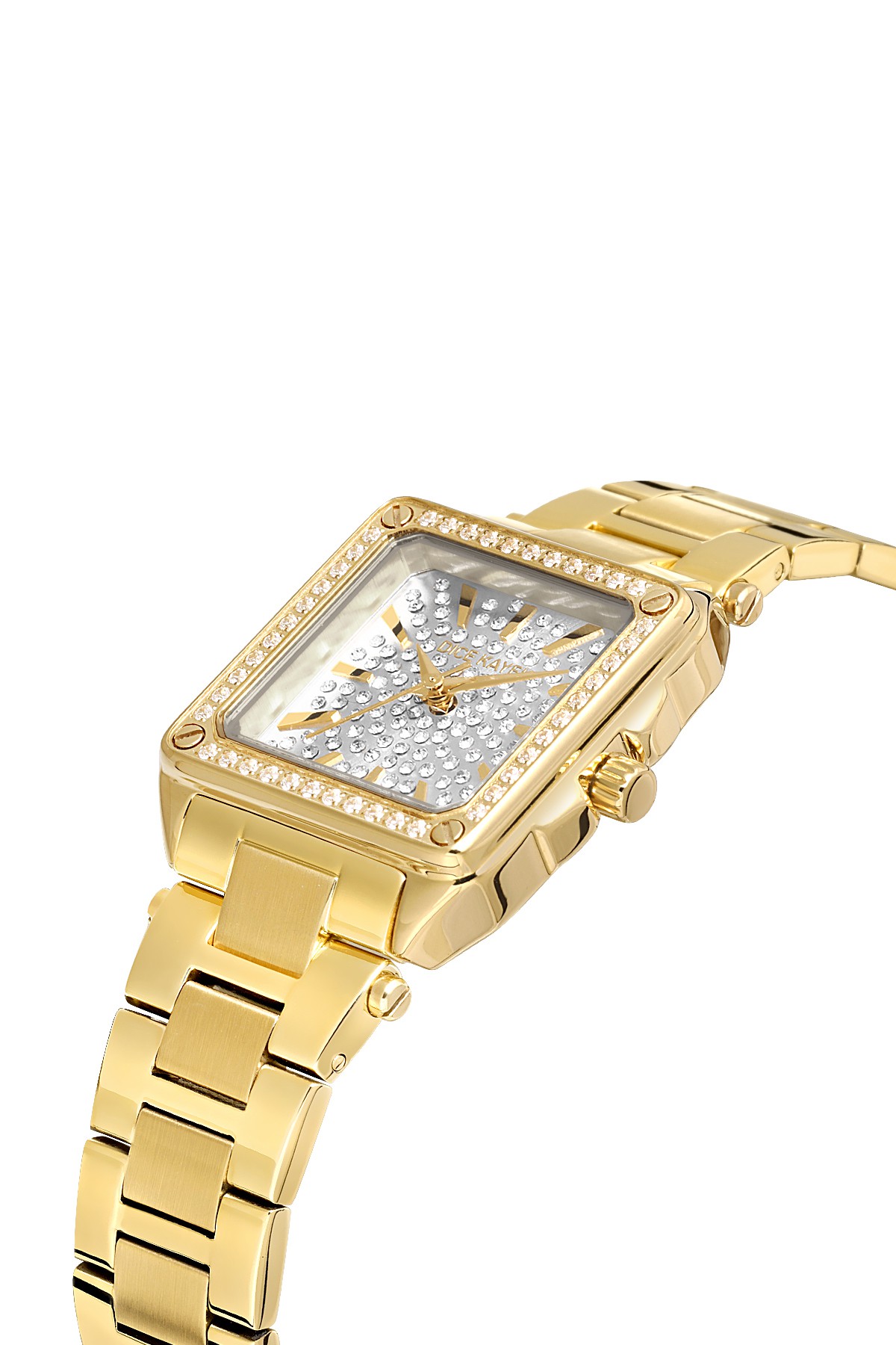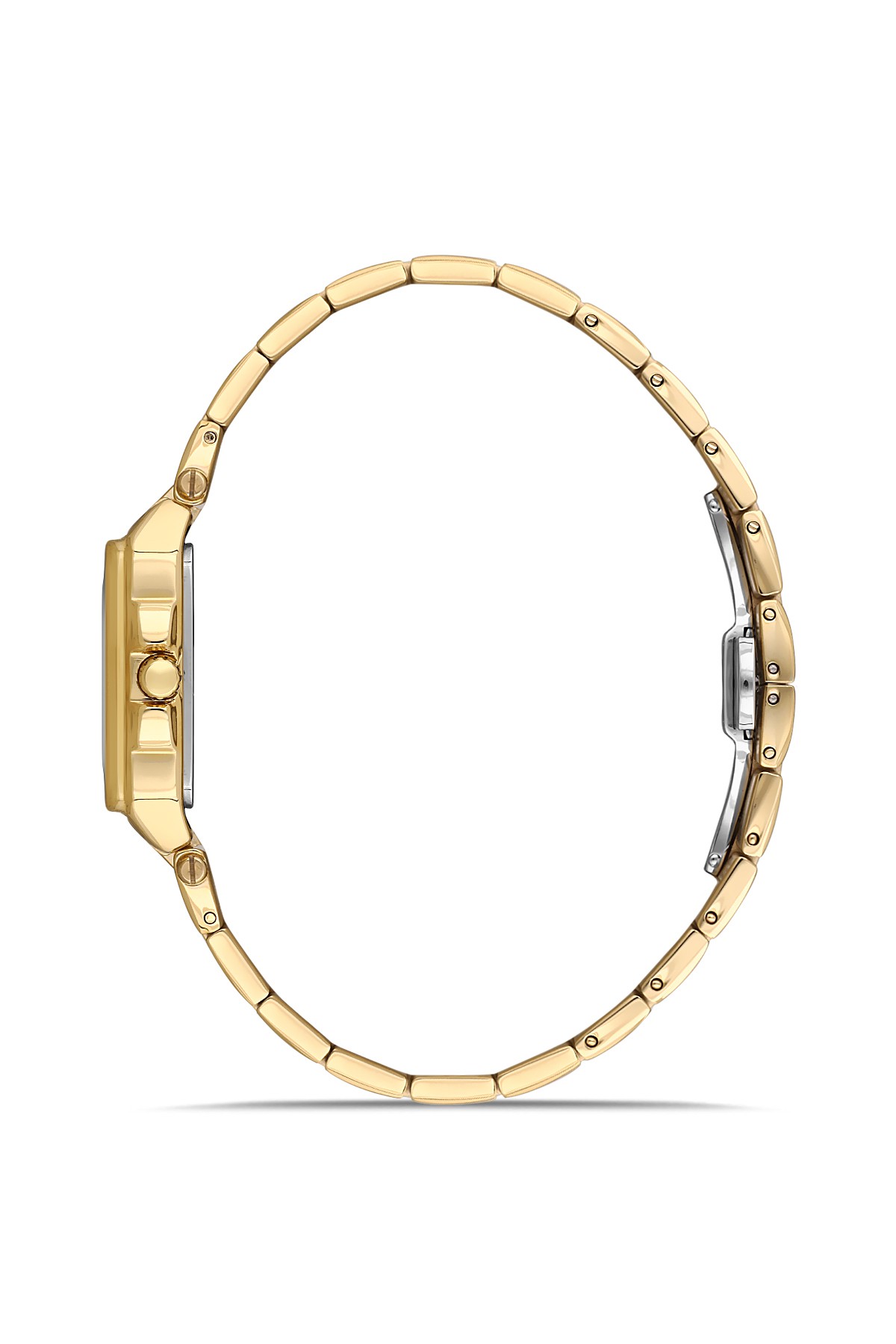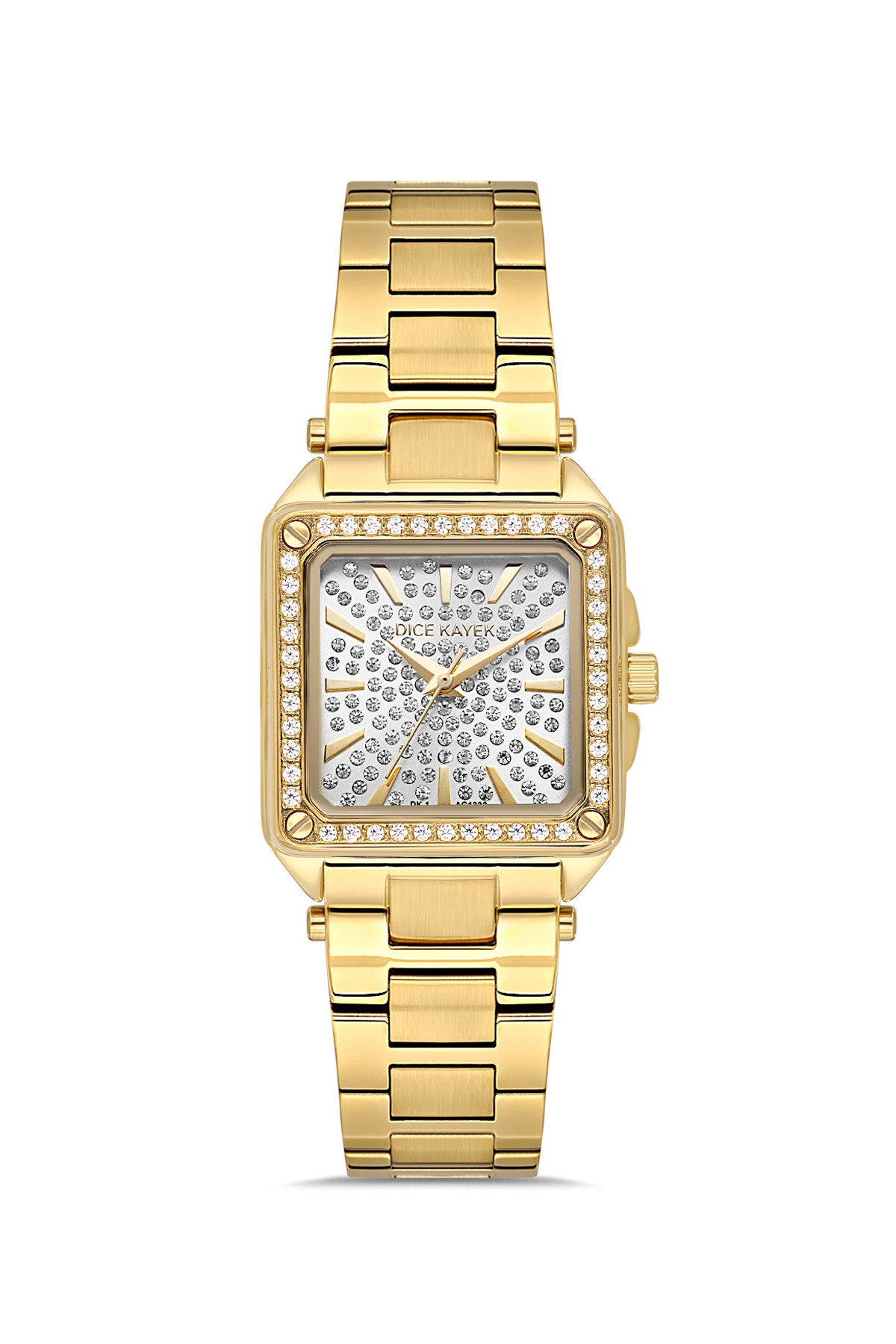 Kadın - Taşli - Sari - Gümüş - Paslanmaz Masi̇f Çeli̇k - 3 Atm - Sertleşti̇ri̇lmi̇ş Mi̇neral Cam - Dice Kayek - 27*27