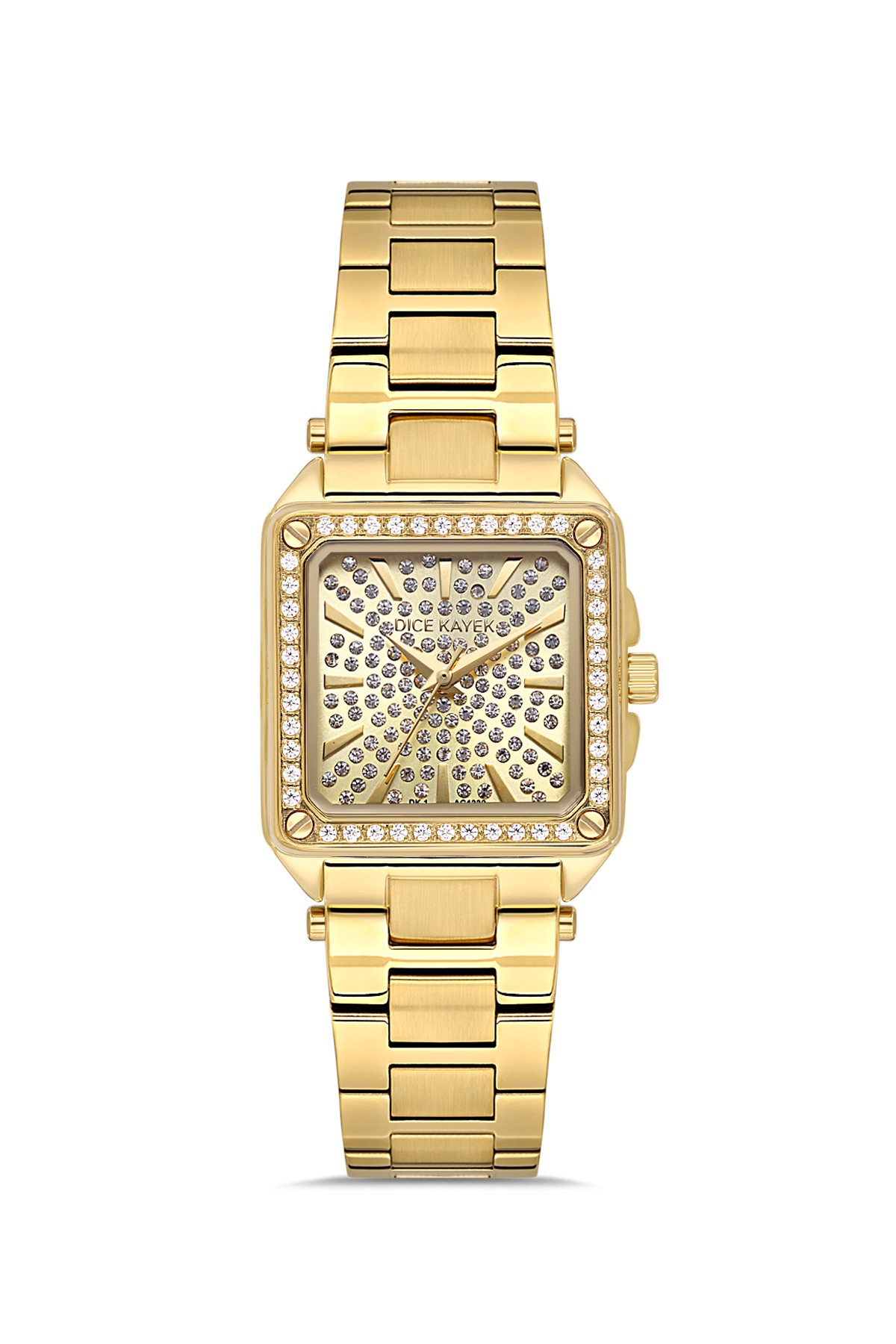 Kadın - Taşli - Sari - Sari - Paslanmaz Masi̇f Çeli̇k - 3 Atm - Sertleşti̇ri̇lmi̇ş Mi̇neral Cam - Dice Kayek - 27*27