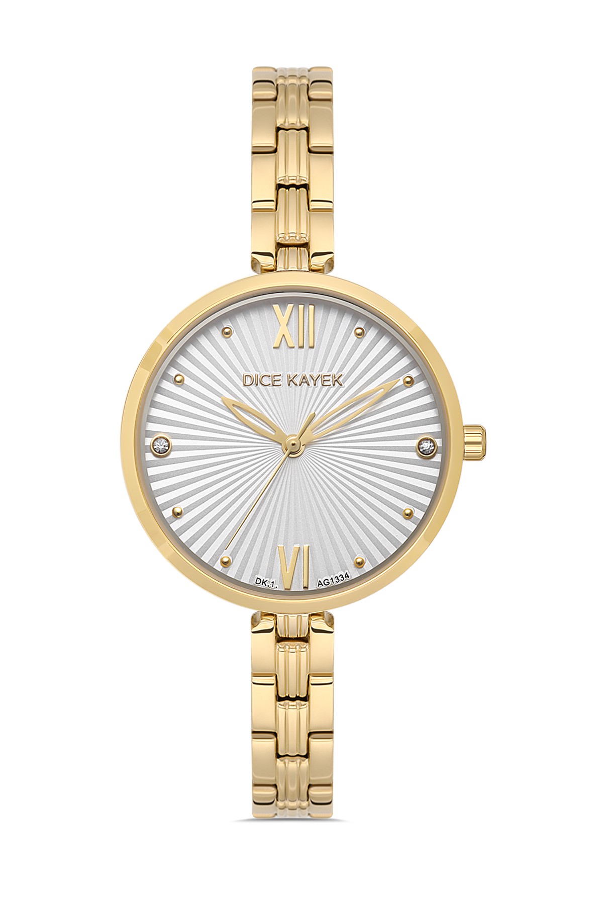 Kadın - Düz - Sari - Gümüş - Paslanmaz Masi̇f Çeli̇k - 3 Atm - Sertleşti̇ri̇lmi̇ş Mi̇neral Cam - Dice Kayek