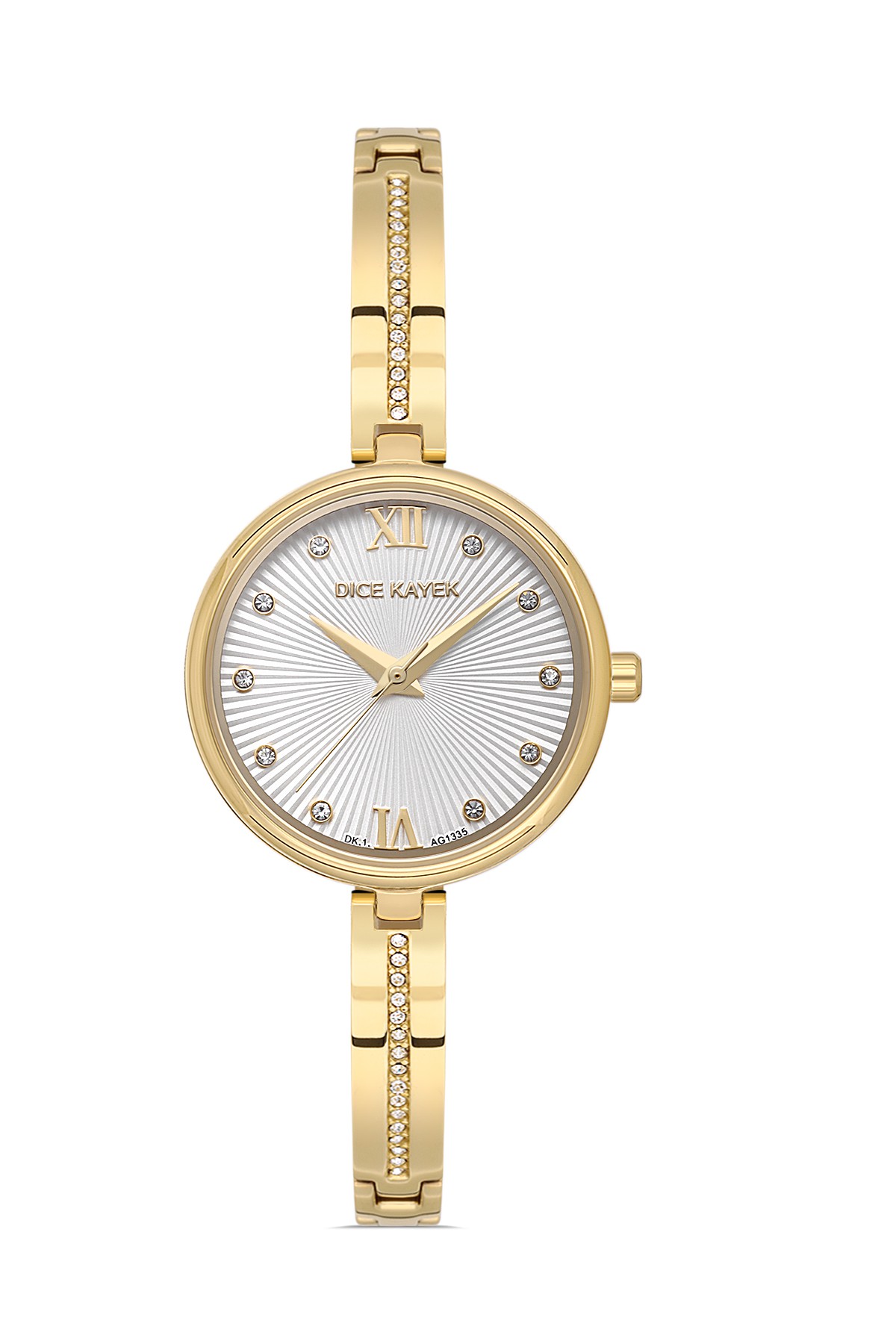 Kadın - Düz - Sari - Gümüş - Paslanmaz Masi̇f Çeli̇k - 3 Atm - Sertleşti̇ri̇lmi̇ş Mi̇neral Cam - Dice Kayek