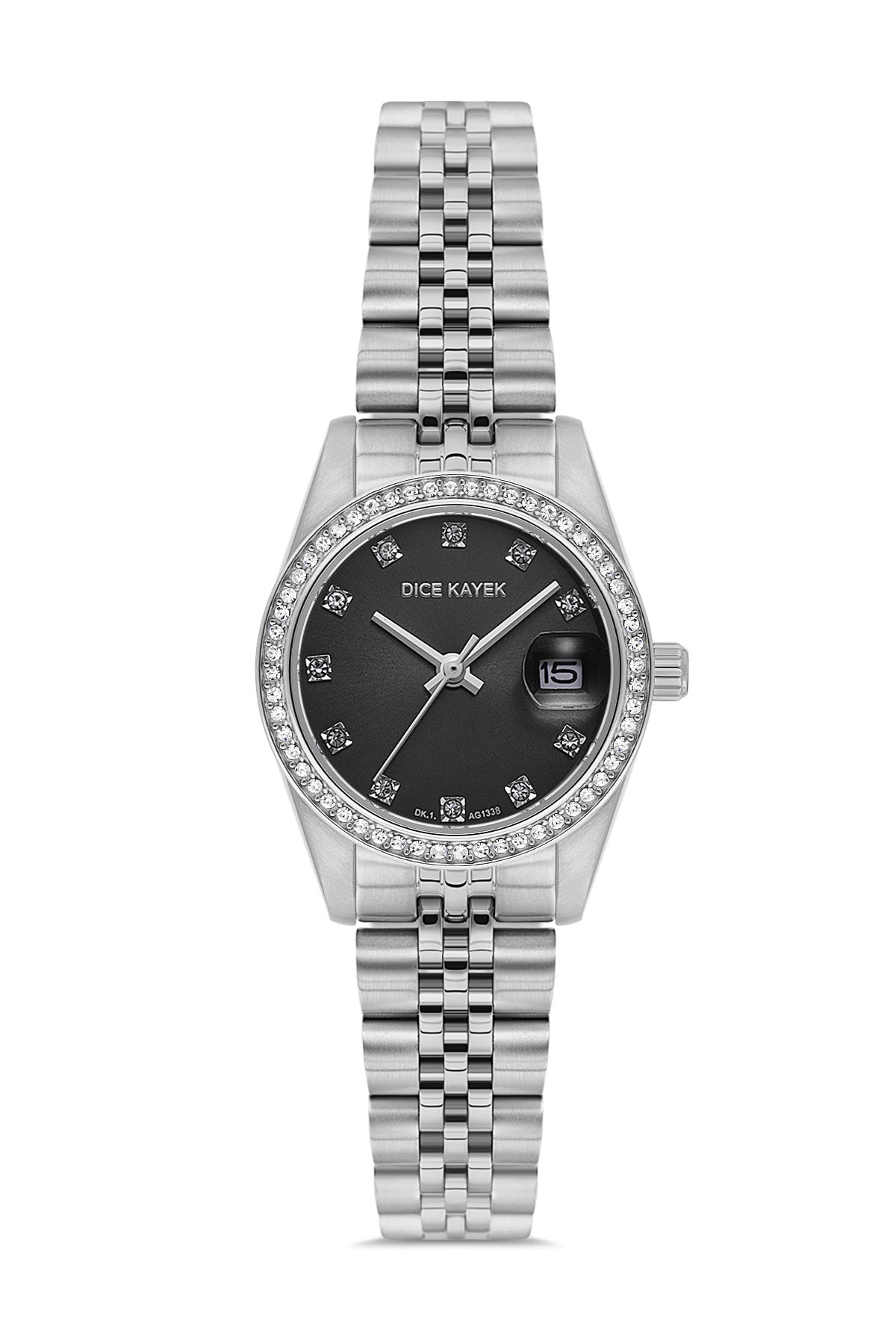 Kadın - Taşli - Gümüş - Si̇yah - Paslanmaz Masi̇f Çeli̇k - 3 Atm - Sertleşti̇ri̇lmi̇ş Mi̇neral Cam - Dice Kayek - 26