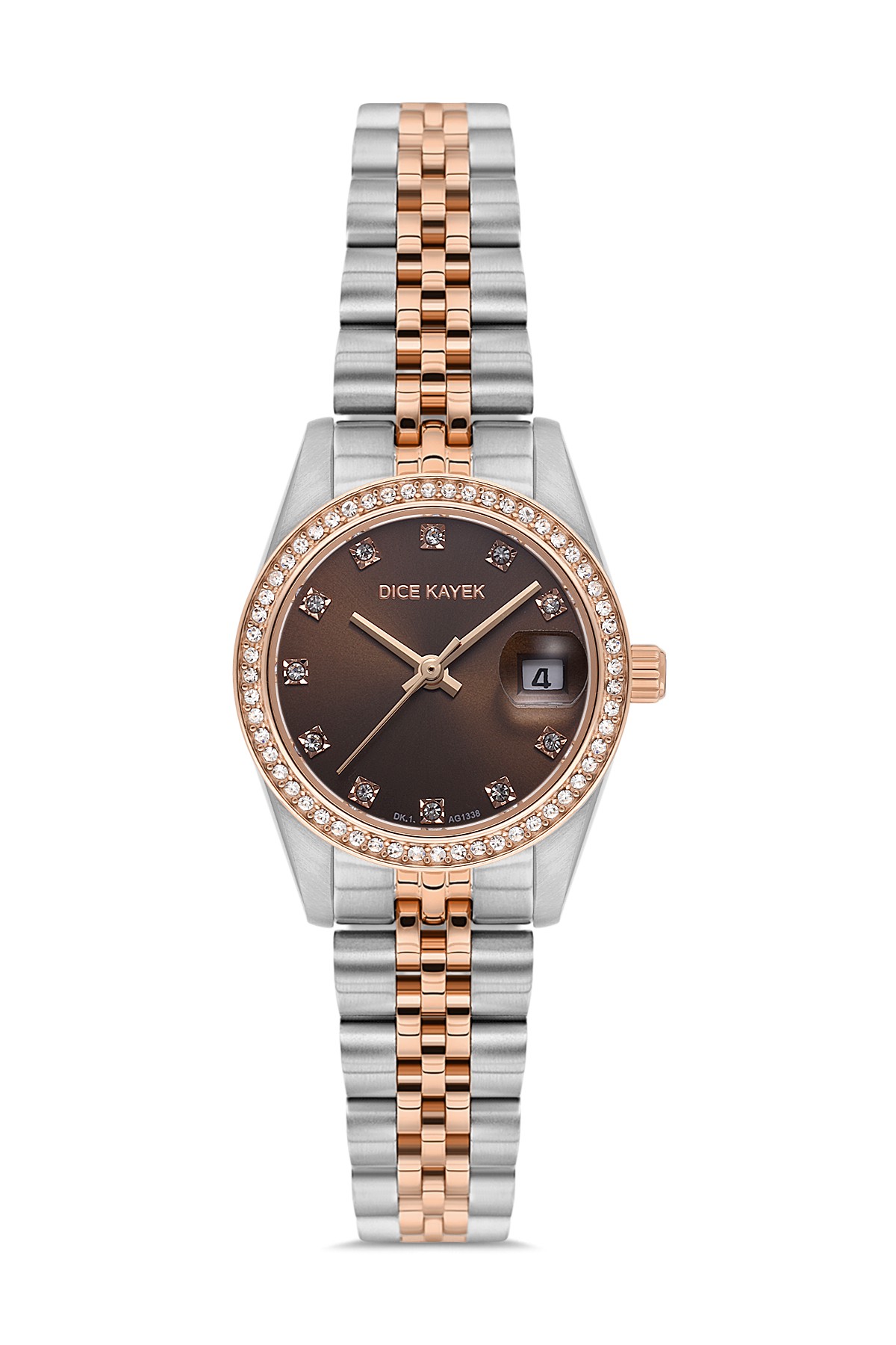 Kadın - Taşli - Rose Beyaz - Kahverengi̇ - Paslanmaz Masi̇f Çeli̇k - 3 Atm - Sertleşti̇ri̇lmi̇ş Mi̇neral Cam - Dice Kayek - 26