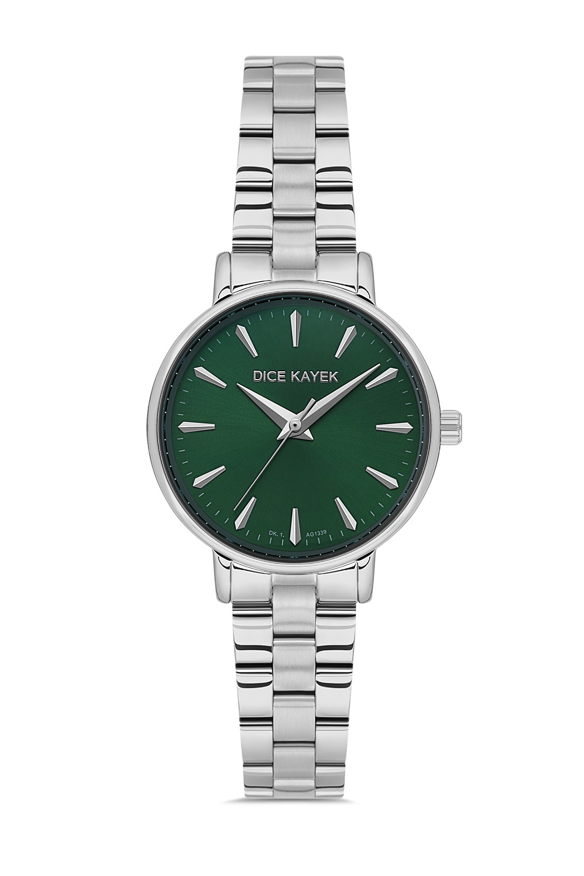 Kadın - Düz - Gümüş - Yeşi̇l - Paslanmaz Masi̇f Çeli̇k - 3 Atm - Sertleşti̇ri̇lmi̇ş Mi̇neral Cam - Dice Kayek - 28