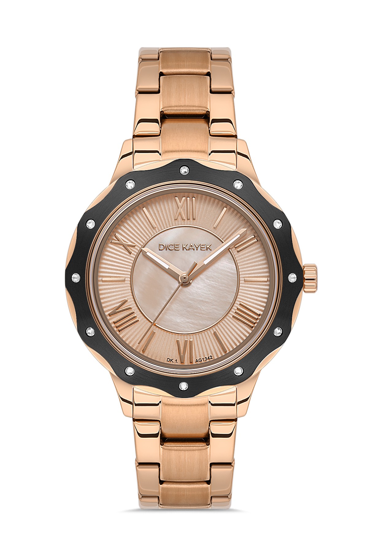 Kadın - Düz - Rose - Rose - Paslanmaz Masi̇f Çeli̇k - 3 Atm - Sertleşti̇ri̇lmi̇ş Mi̇neral Cam - Dice Kayek - 35