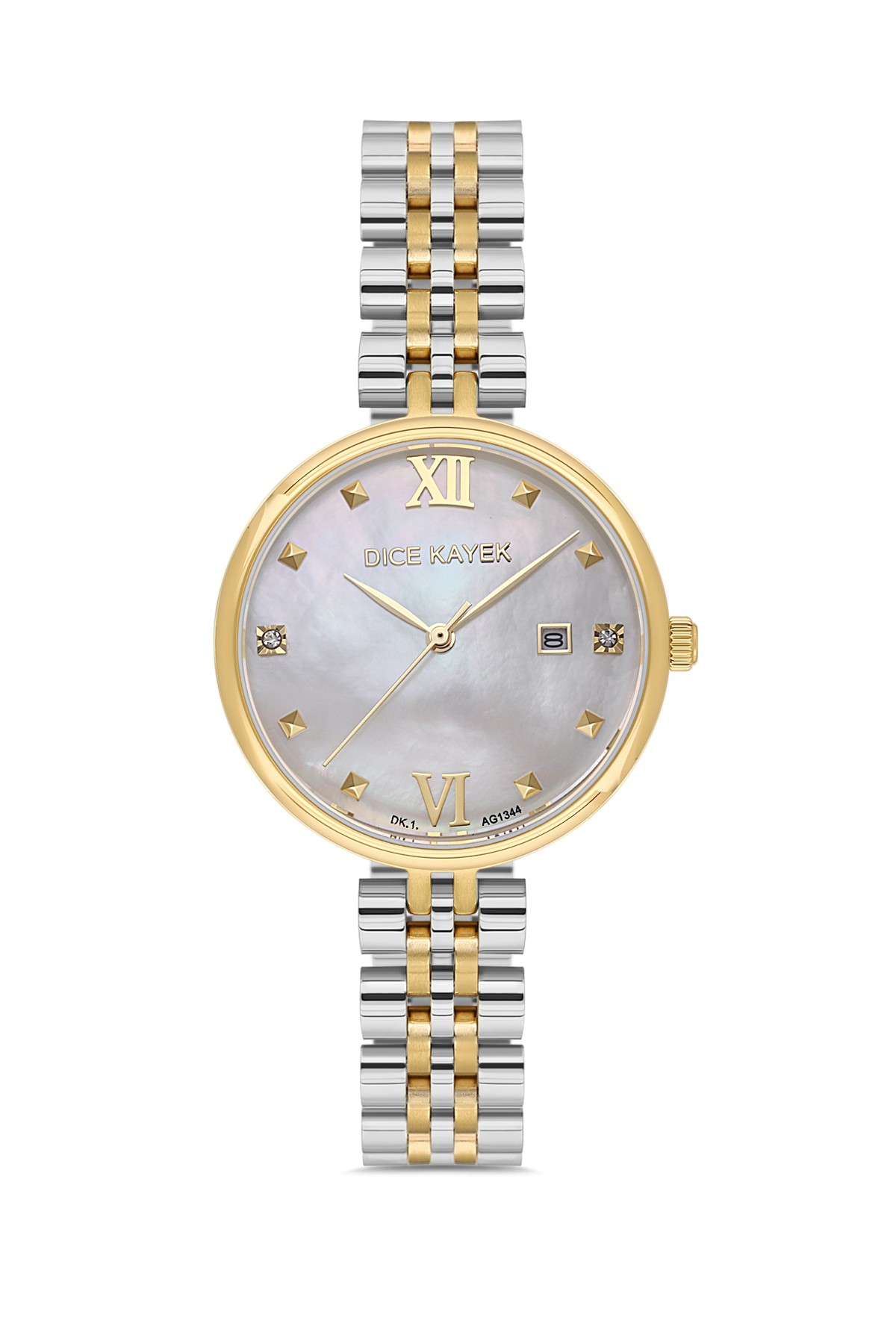 Kadın - Takvi̇mli̇ - Sari Beyaz - Gümüş - Paslanmaz Masi̇f Çeli̇k - 3 Atm - Sertleşti̇ri̇lmi̇ş Mi̇neral Cam - Dice Kayek - 32