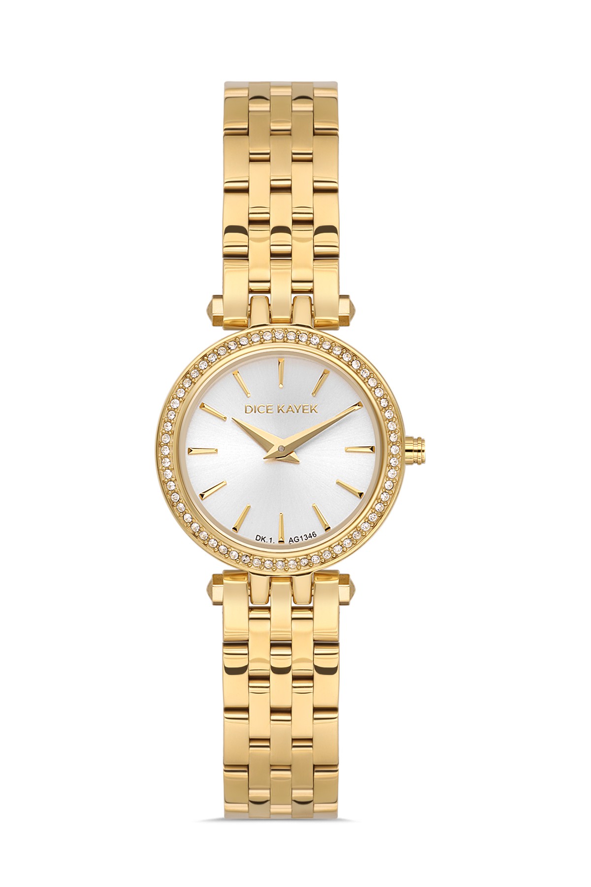 Kadın - Taşli - Sari - Gümüş - Paslanmaz Masi̇f Çeli̇k - 3 Atm - Sertleşti̇ri̇lmi̇ş Mi̇neral Cam - Dice Kayek - 26