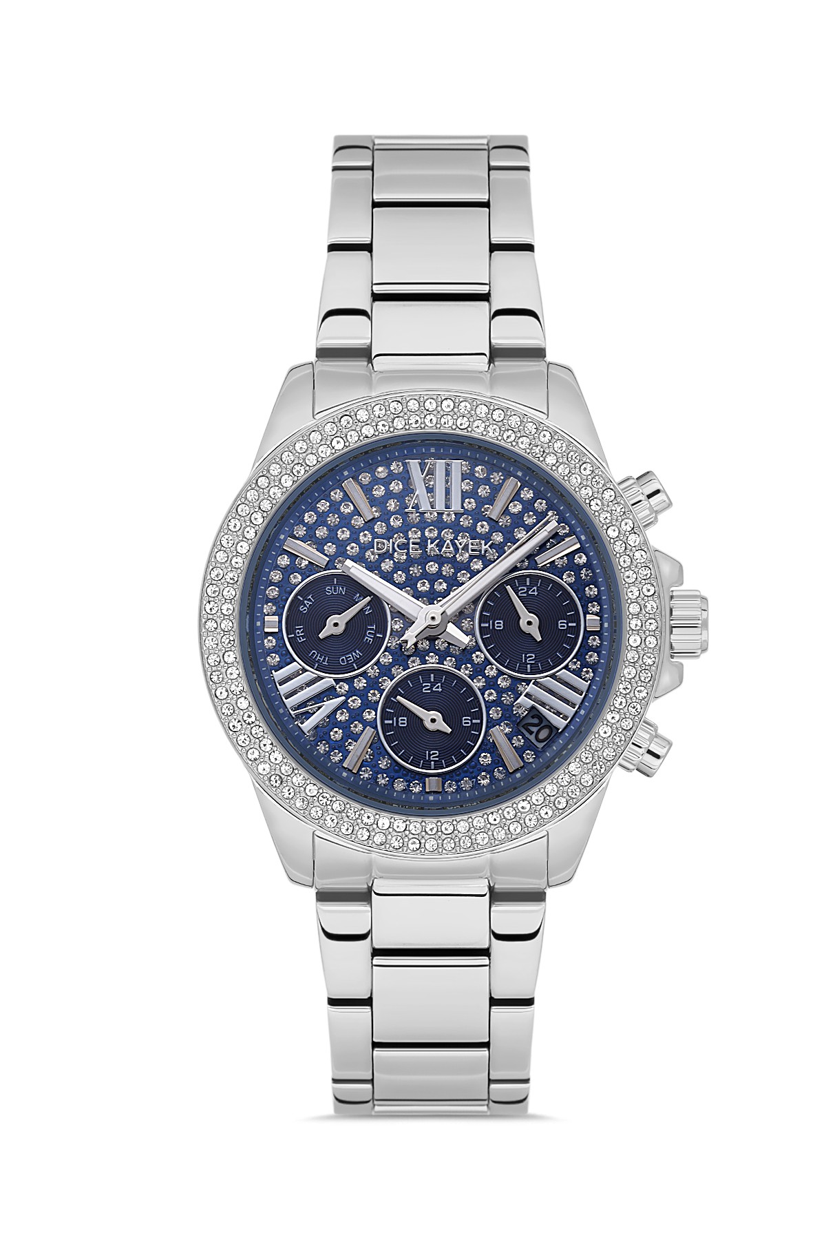 Kadın - Multi̇ Fonksi̇yon - Gümüş - Mavi̇ - Paslanmaz Masi̇f Çeli̇k - 3 Atm - Sertleşti̇ri̇lmi̇ş Mi̇neral Cam - Dice Kayek - 37