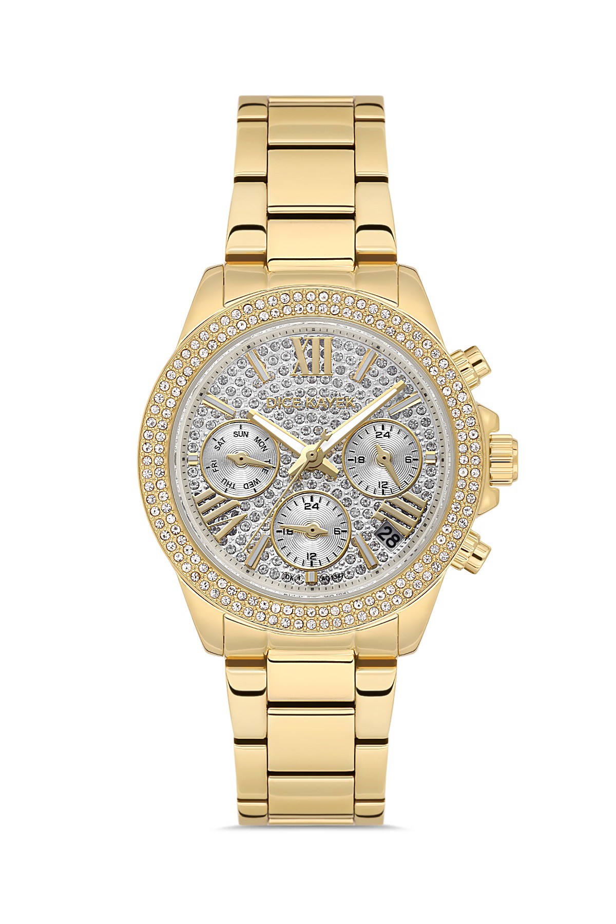 Kadın - Multi̇ Fonksi̇yon - Sari - Gümüş - Paslanmaz Masi̇f Çeli̇k - 3 Atm - Sertleşti̇ri̇lmi̇ş Mi̇neral Cam - Dice Kayek - 37
