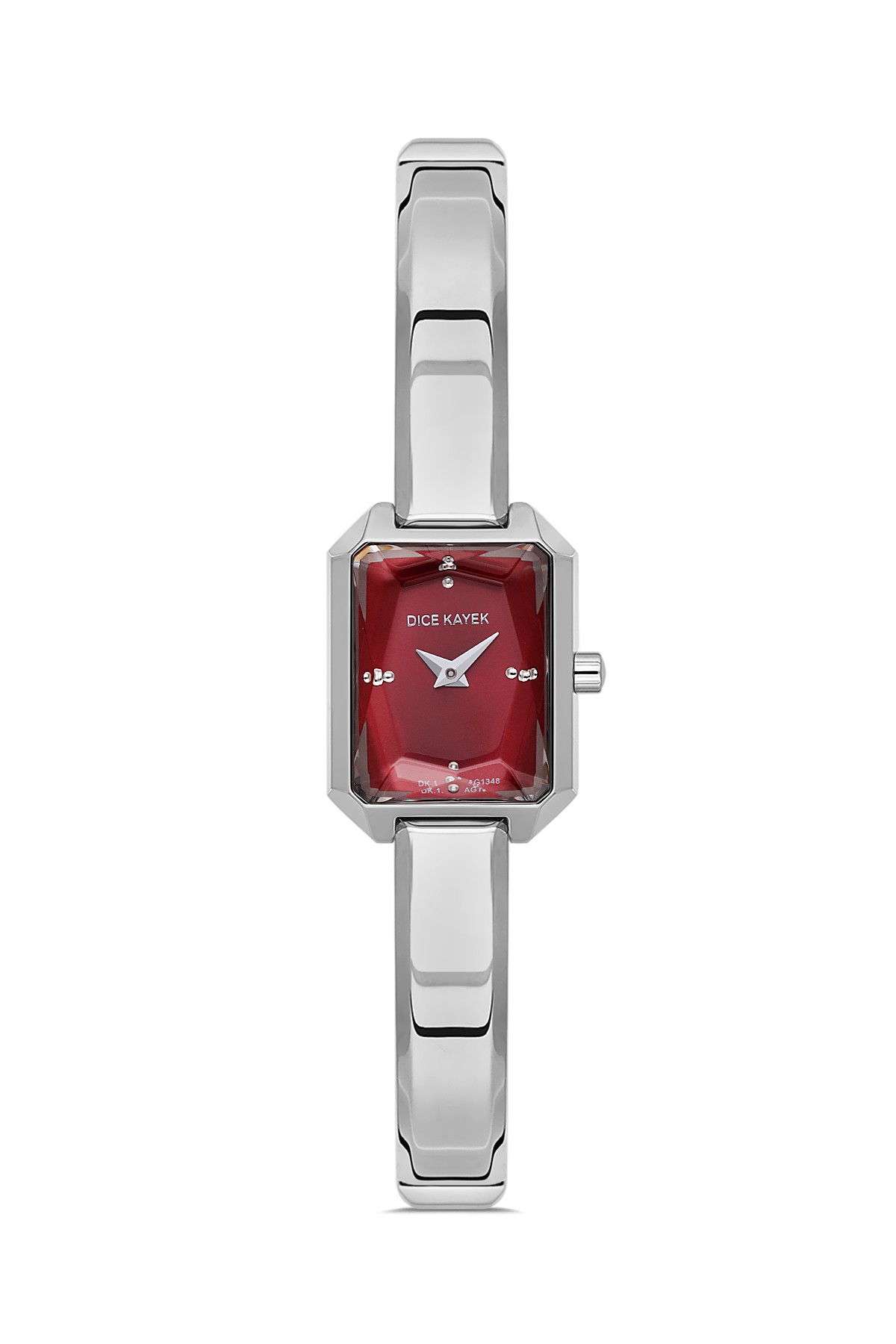Kadın - Düz - Gümüş - Bordo - Paslanmaz Masi̇f Çeli̇k - 3 Atm - Sertleşti̇ri̇lmi̇ş Mi̇neral Cam - Dice Kayek - 18*24