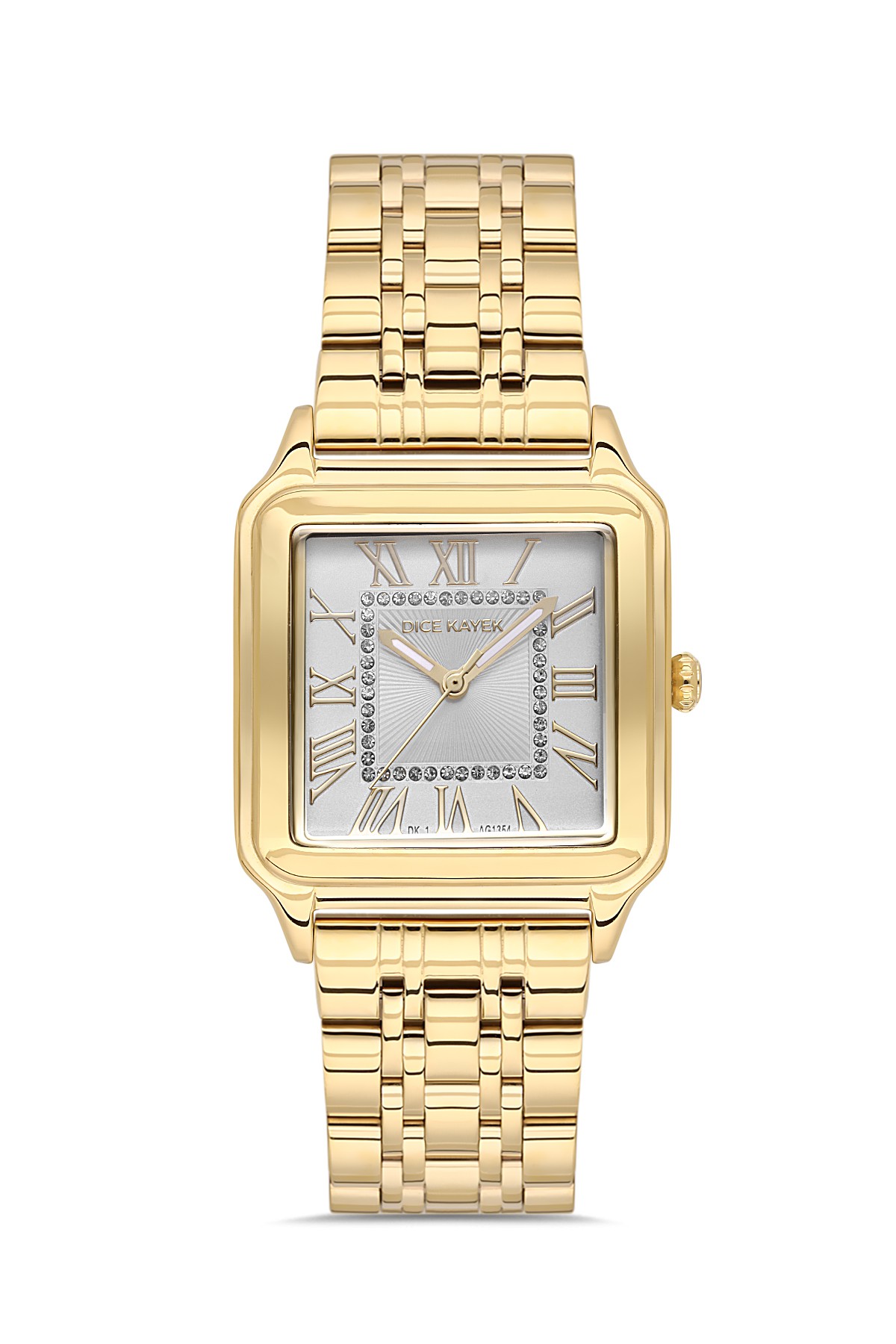 Kadın - Düz - Sari - Gümüş - Paslanmaz Masi̇f Çeli̇k - 3 Atm - Sertleşti̇ri̇lmi̇ş Mi̇neral Cam - Dice Kayek - 32*32