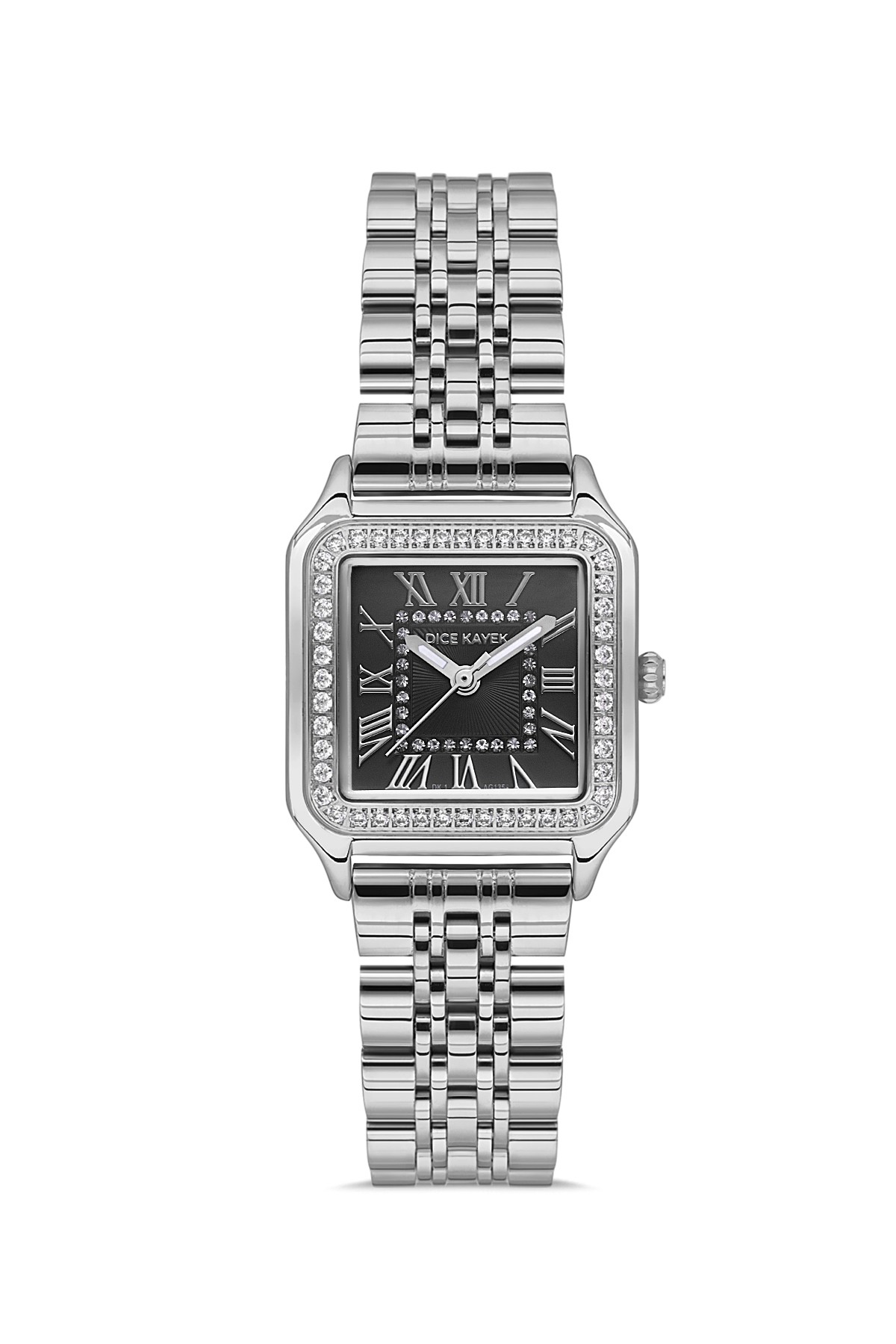 Kadın - Taşli - Gümüş - Si̇yah - Paslanmaz Masi̇f Çeli̇k - 3 Atm - Sertleşti̇ri̇lmi̇ş Mi̇neral Cam - Dice Kayek - 26*26