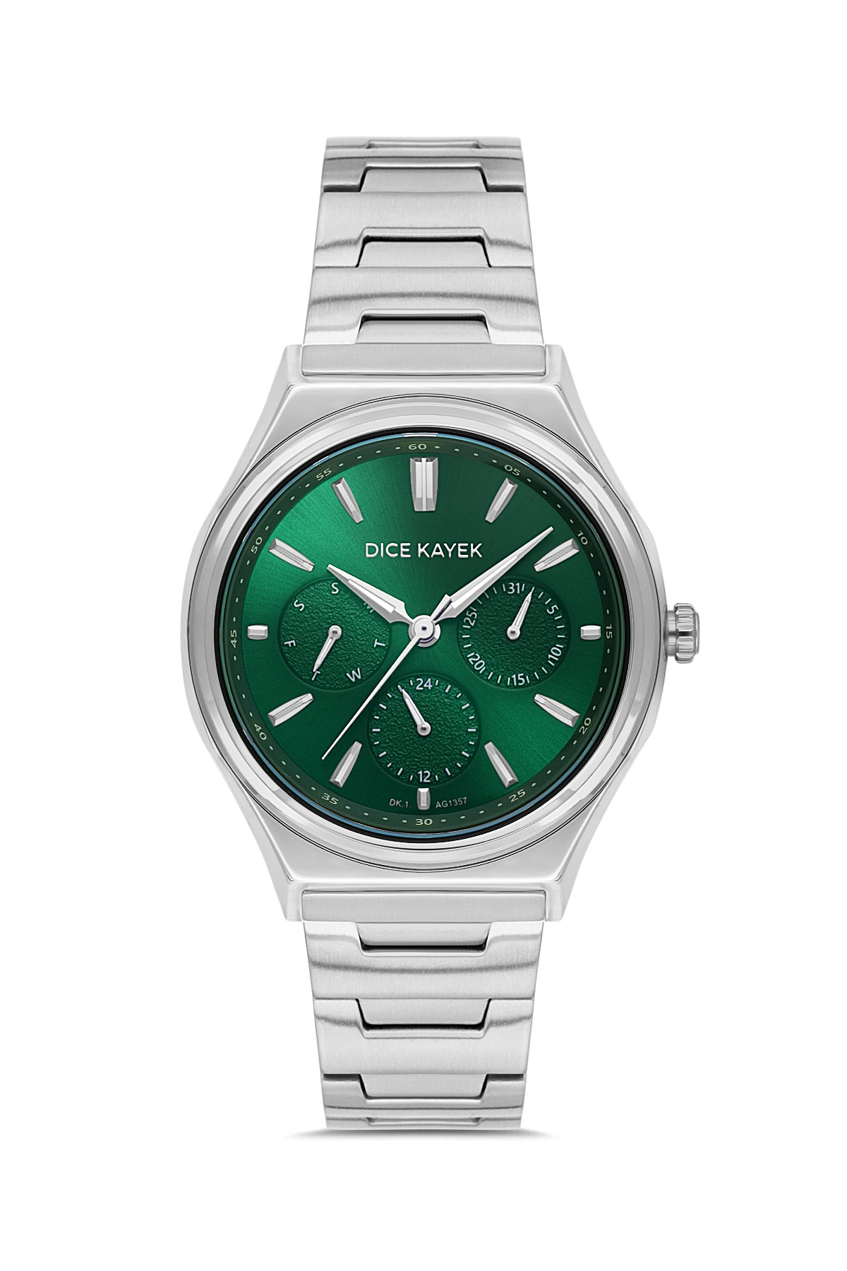 Kadın - Multi̇ Fonksi̇yon - Gümüş - Yeşi̇l - Paslanmaz Masi̇f Çeli̇k - 3 Atm - Sertleşti̇ri̇lmi̇ş Mi̇neral Cam - Dice Kayek - 36