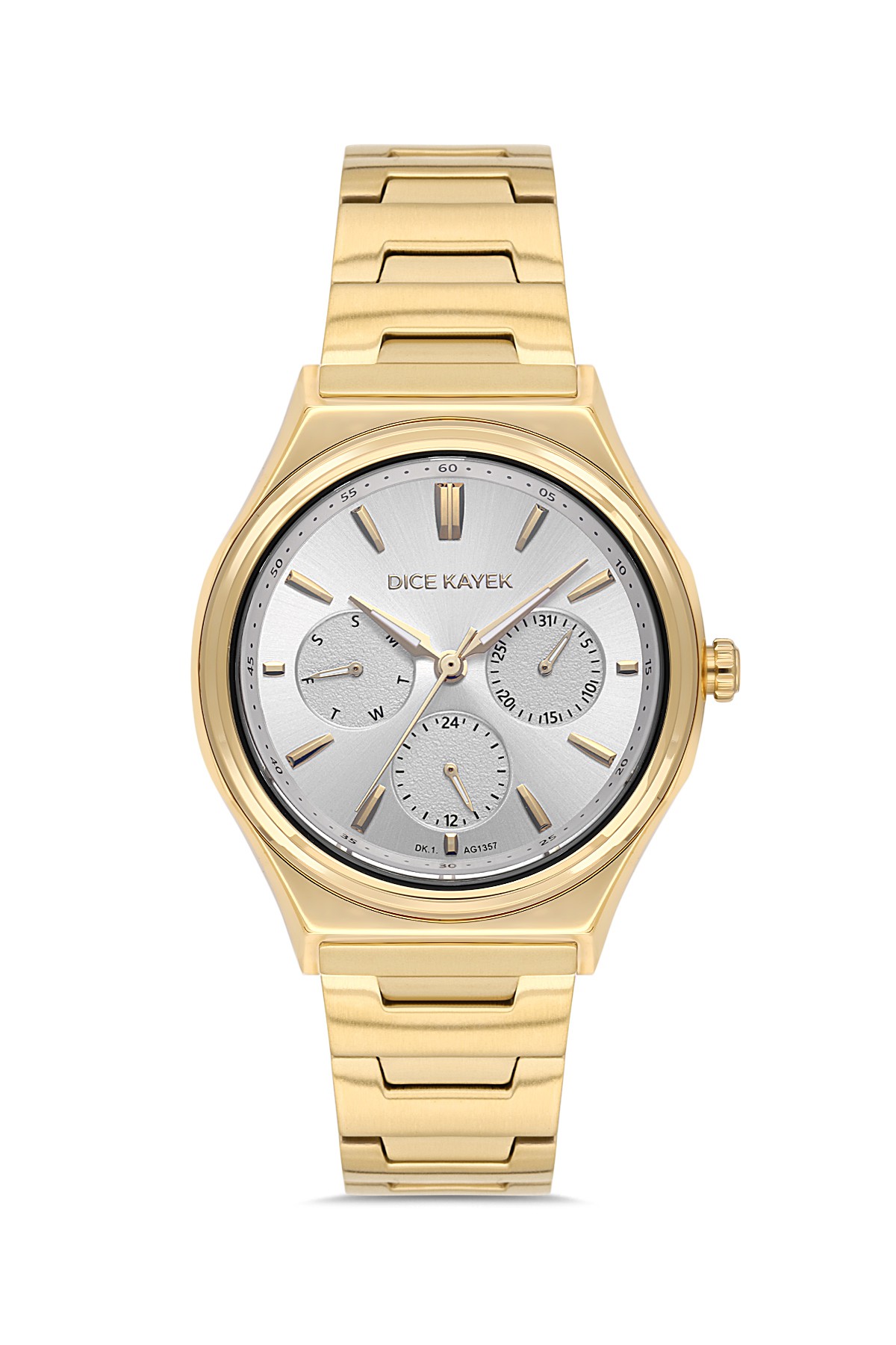 Kadın - Multi̇ Fonksi̇yon - Sari - Gümüş - Paslanmaz Masi̇f Çeli̇k - 3 Atm - Sertleşti̇ri̇lmi̇ş Mi̇neral Cam - Dice Kayek - 36