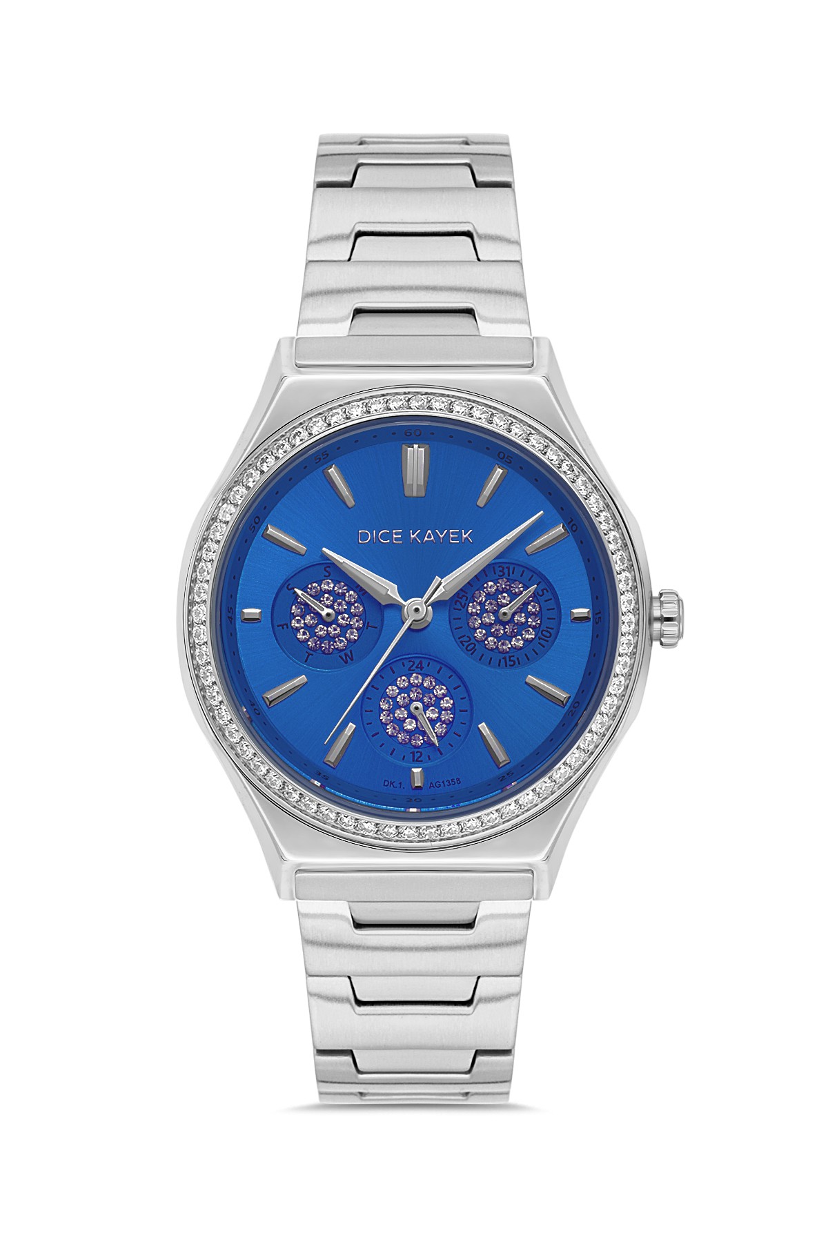 Kadın - Multi̇ Fonksi̇yon - Gümüş - Mavi̇ - Paslanmaz Masi̇f Çeli̇k - 3 Atm - Sertleşti̇ri̇lmi̇ş Mi̇neral Cam - Dice Kayek - 36