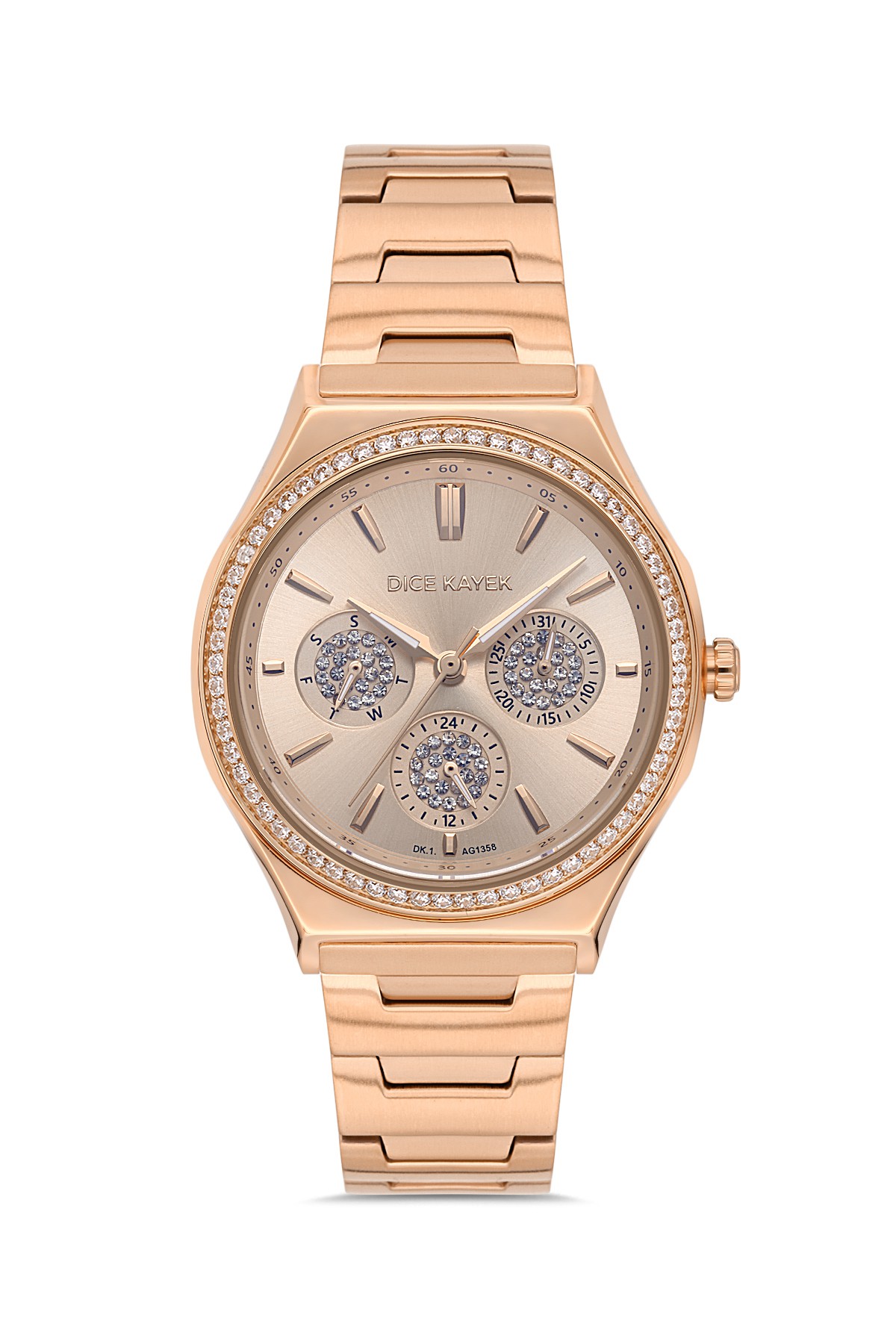 Kadın - Multi̇ Fonksi̇yon - Rose - Rose - Paslanmaz Masi̇f Çeli̇k - 3 Atm - Sertleşti̇ri̇lmi̇ş Mi̇neral Cam - Dice Kayek - 36