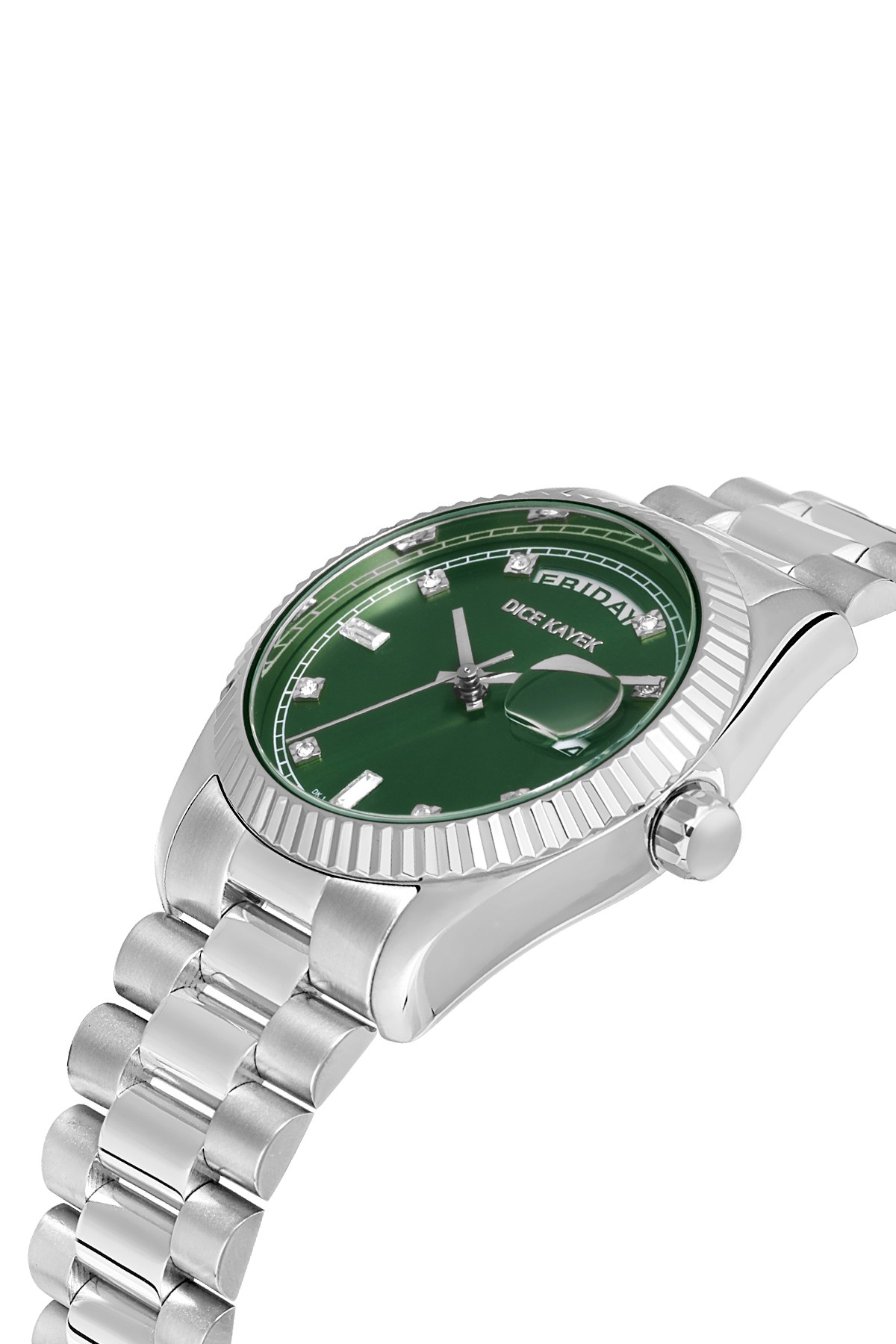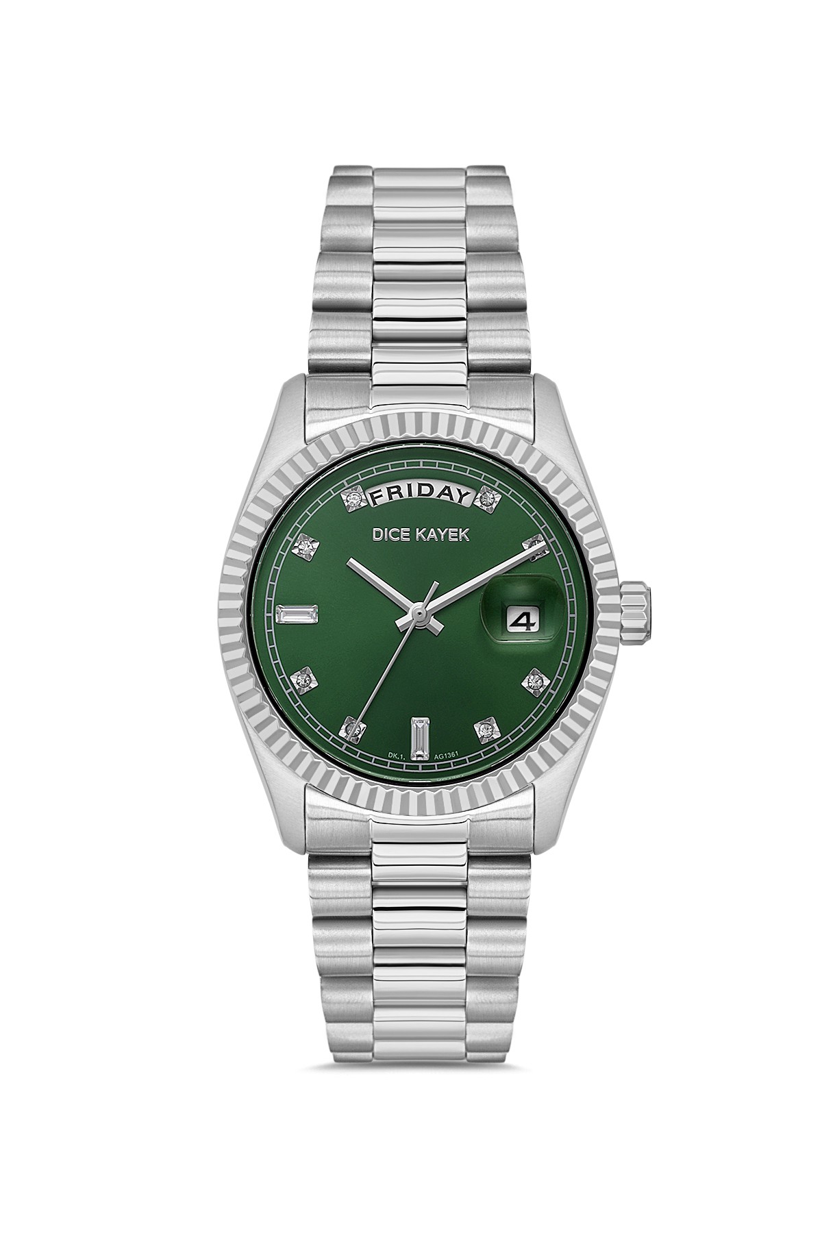 Kadın - Takvi̇mli̇ - Gümüş - Yeşi̇l - Paslanmaz Masi̇f Çeli̇k - 3 Atm - Sertleşti̇ri̇lmi̇ş Mi̇neral Cam - Dice Kayek - 34
