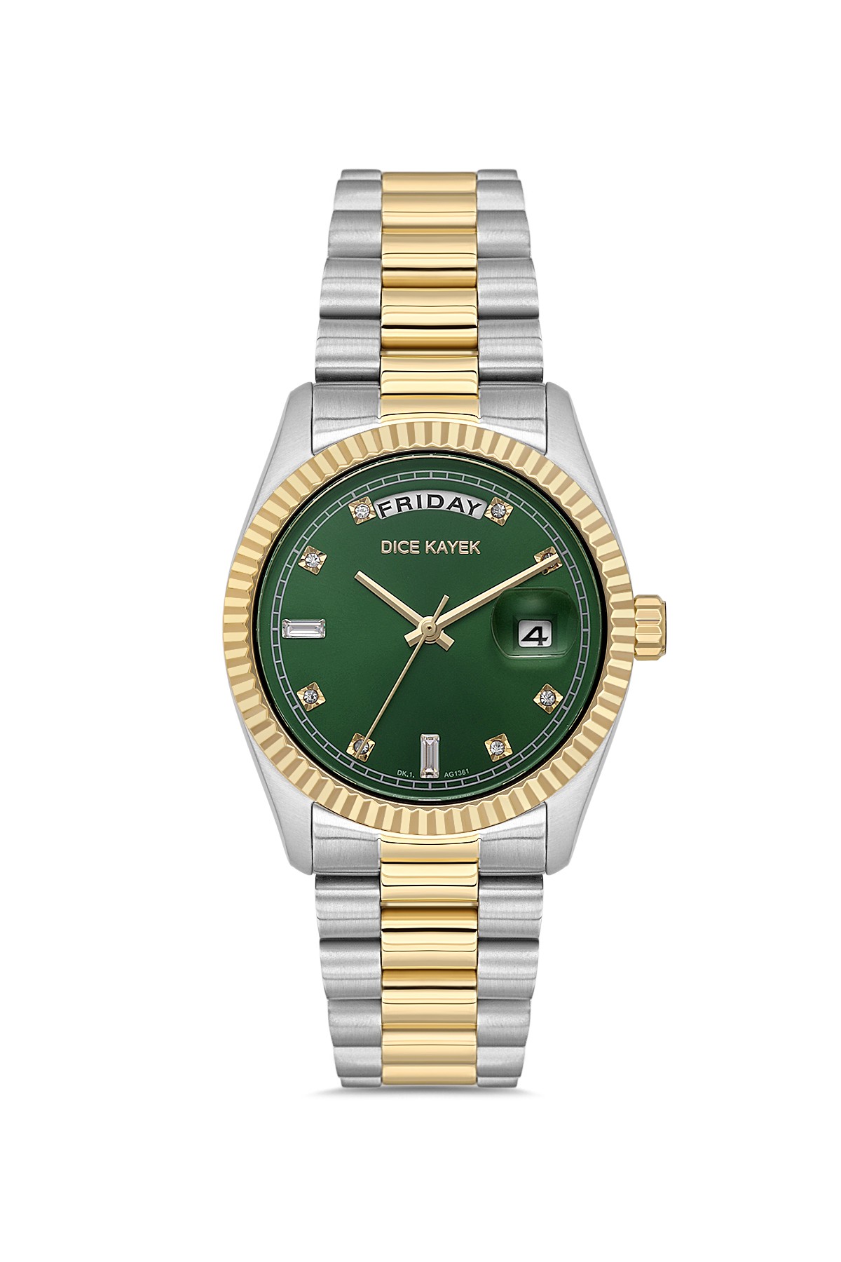 Kadın - Takvi̇mli̇ - Sari Beyaz - Yeşi̇l - Paslanmaz Masi̇f Çeli̇k - 3 Atm - Sertleşti̇ri̇lmi̇ş Mi̇neral Cam - Dice Kayek - 34