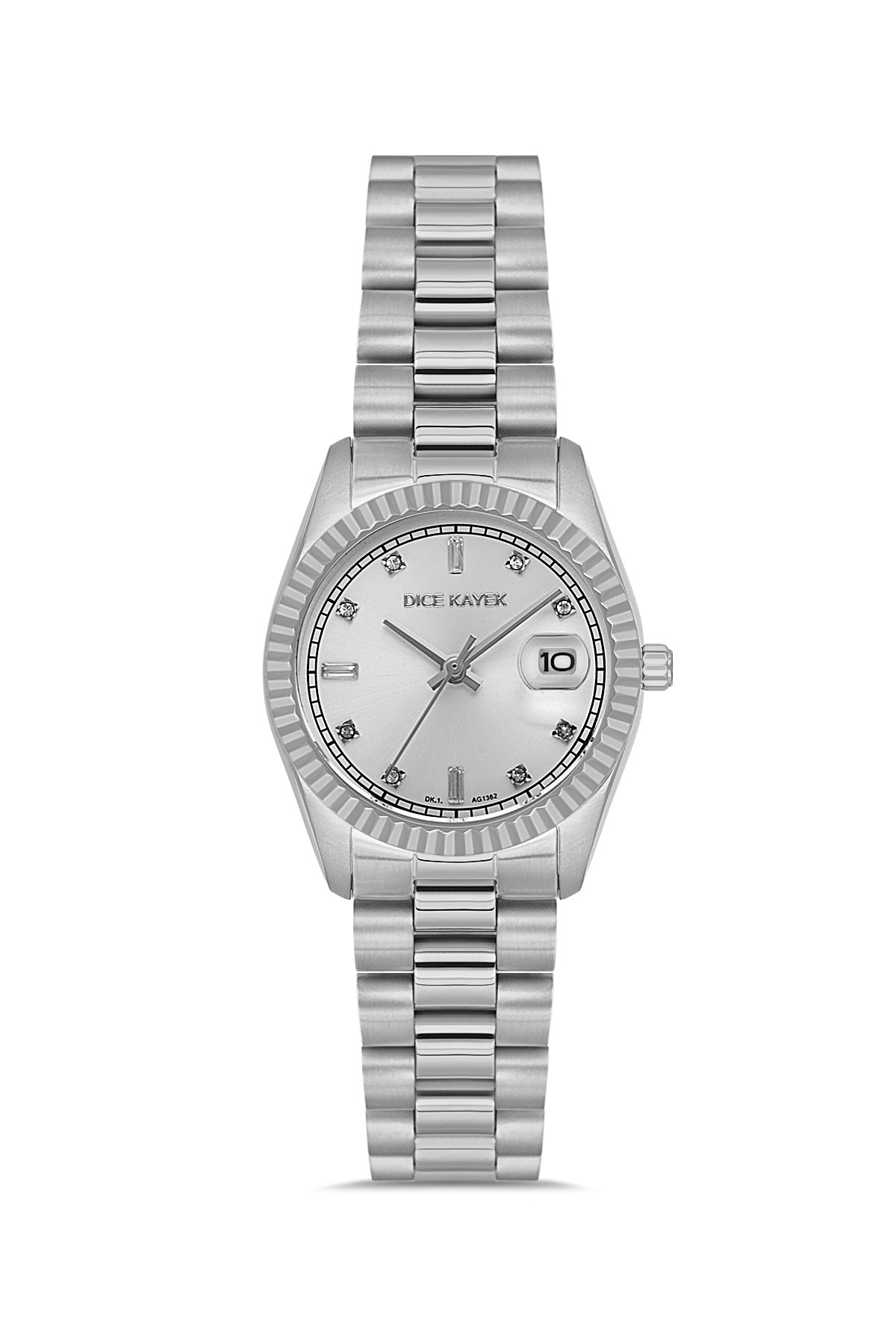 Kadın - Takvi̇mli̇ - Gümüş - Gümüş - Paslanmaz Masi̇f Çeli̇k - 5 Atm - Sertleşti̇ri̇lmi̇ş Mi̇neral Cam - Dice Kayek - 28