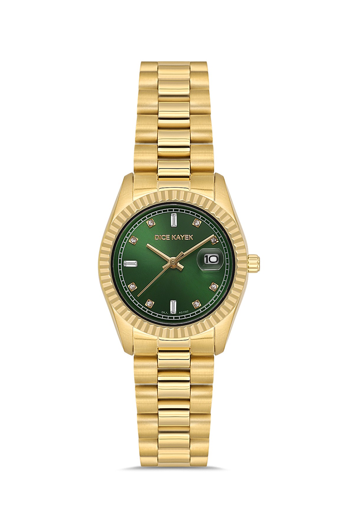 Kadın - Takvi̇mli̇ - Sari - Yeşi̇l - Paslanmaz Masi̇f Çeli̇k - 5 Atm - Sertleşti̇ri̇lmi̇ş Mi̇neral Cam - Dice Kayek - 28