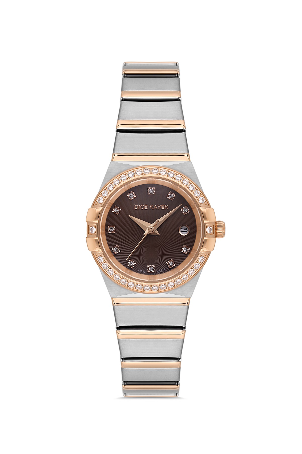Kadın - Taşli - Rose Beyaz - Kahverengi̇ - Paslanmaz Masi̇f Çeli̇k - 3 Atm - Sertleşti̇ri̇lmi̇ş Mi̇neral Cam - Dice Kayek - 28