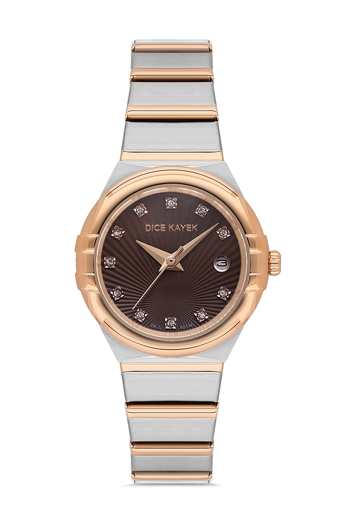 Kadın - Takvi̇mli̇ - Rose Beyaz - Kahverengi̇ - Paslanmaz Masi̇f Çeli̇k - 3 Atm - Sertleşti̇ri̇lmi̇ş Mi̇neral Cam - Dice Kayek - 32
