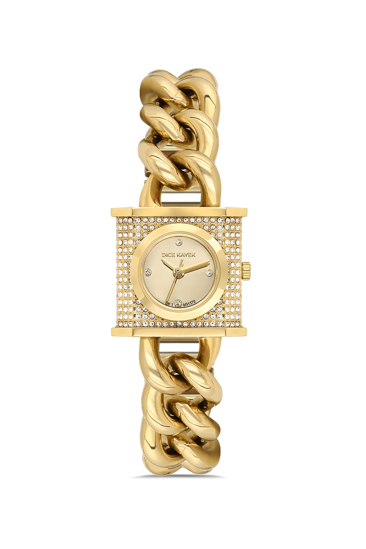 Kadın - Taşli - Sari - Sari - Paslanmaz Masi̇f Çeli̇k - 3 Atm - Sertleşti̇ri̇lmi̇ş Mi̇neral Cam - Dice Kayek - 25*33