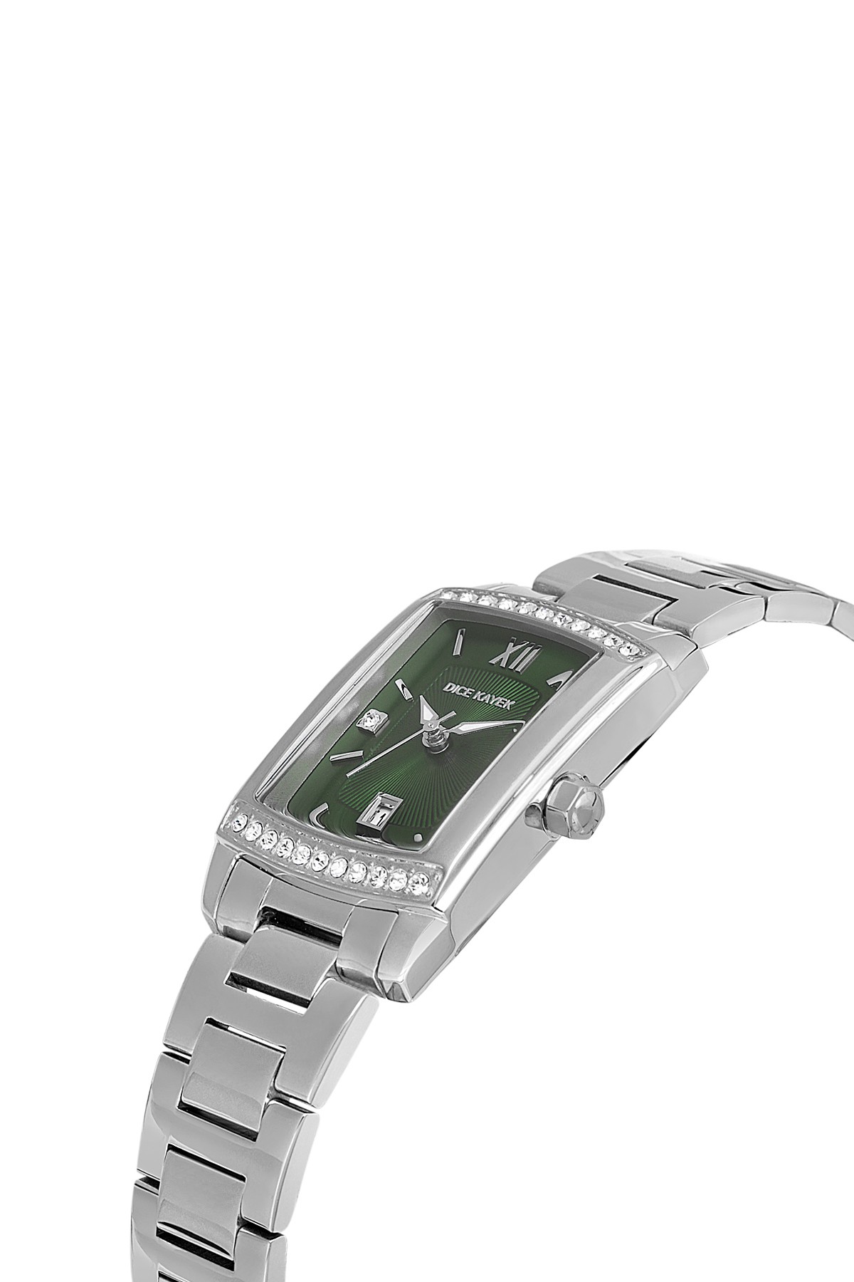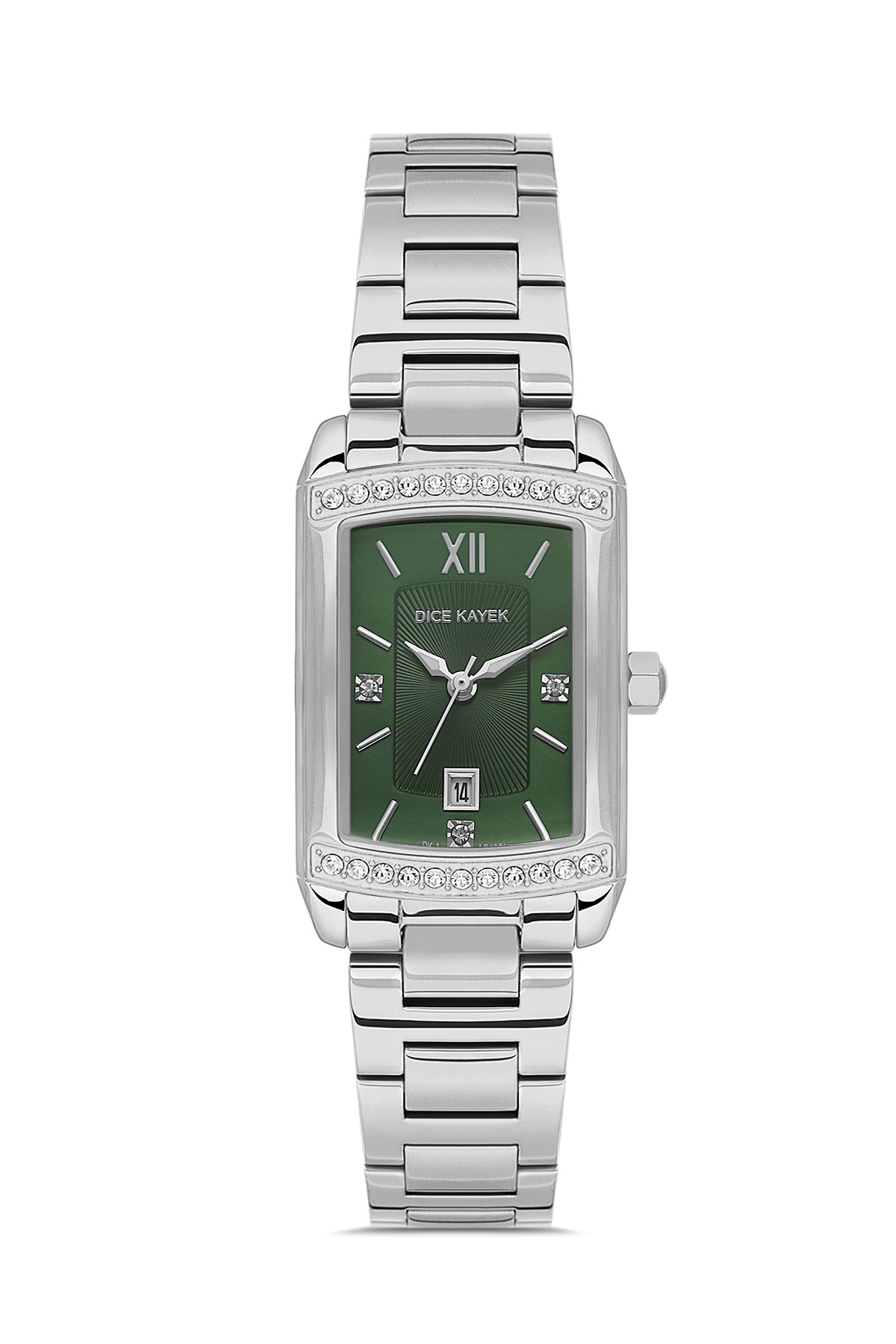 Kadın - Takvi̇mli̇ - Gümüş - Yeşi̇l - Paslanmaz Masi̇f Çeli̇k - 3 Atm - Sertleşti̇ri̇lmi̇ş Mi̇neral Cam - Dice Kayek - 23*29