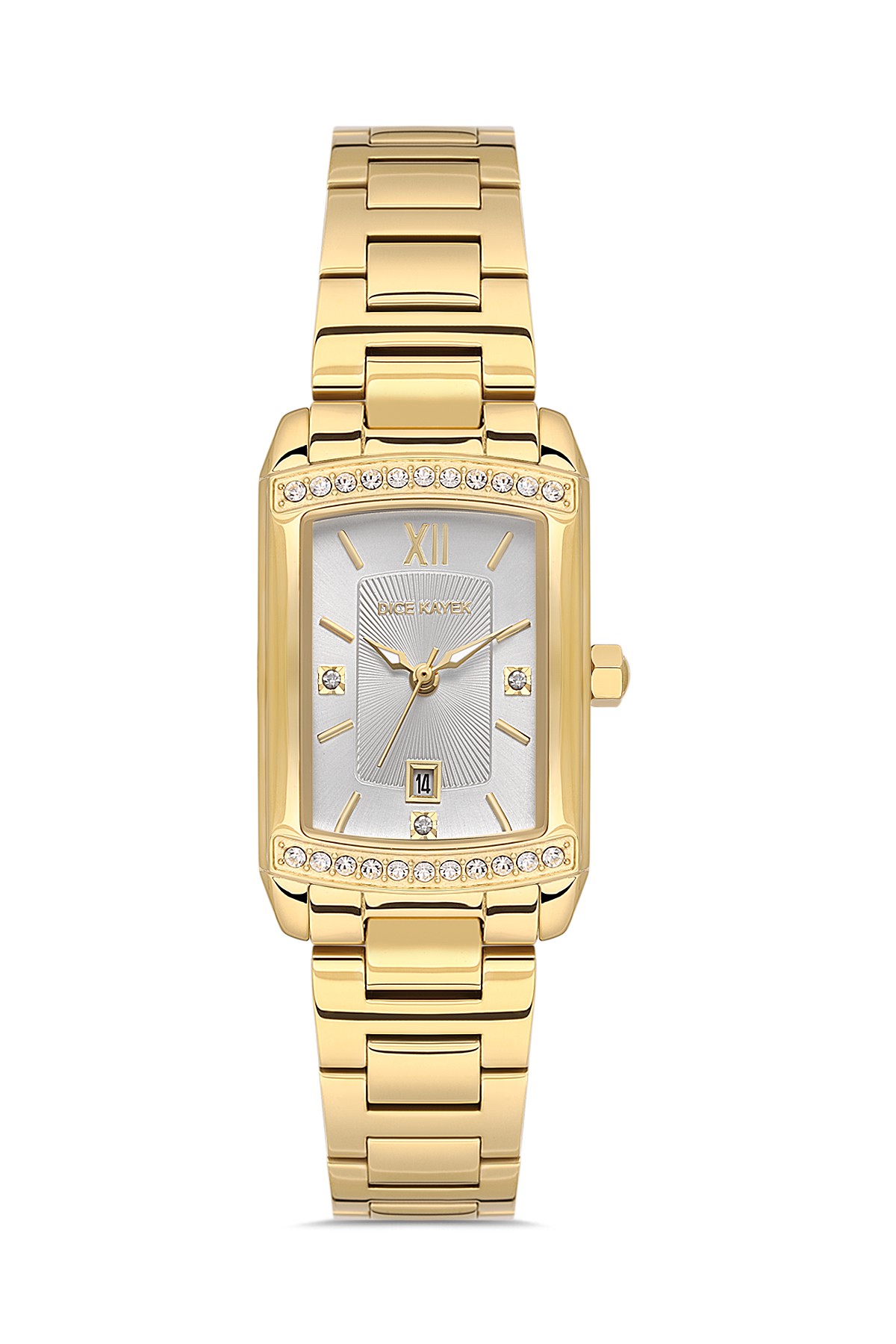 Kadın - Takvi̇mli̇ - Sari - Gümüş - Paslanmaz Masi̇f Çeli̇k - 3 Atm - Sertleşti̇ri̇lmi̇ş Mi̇neral Cam - Dice Kayek - 23*29