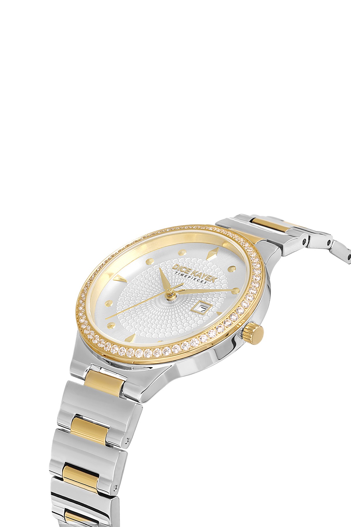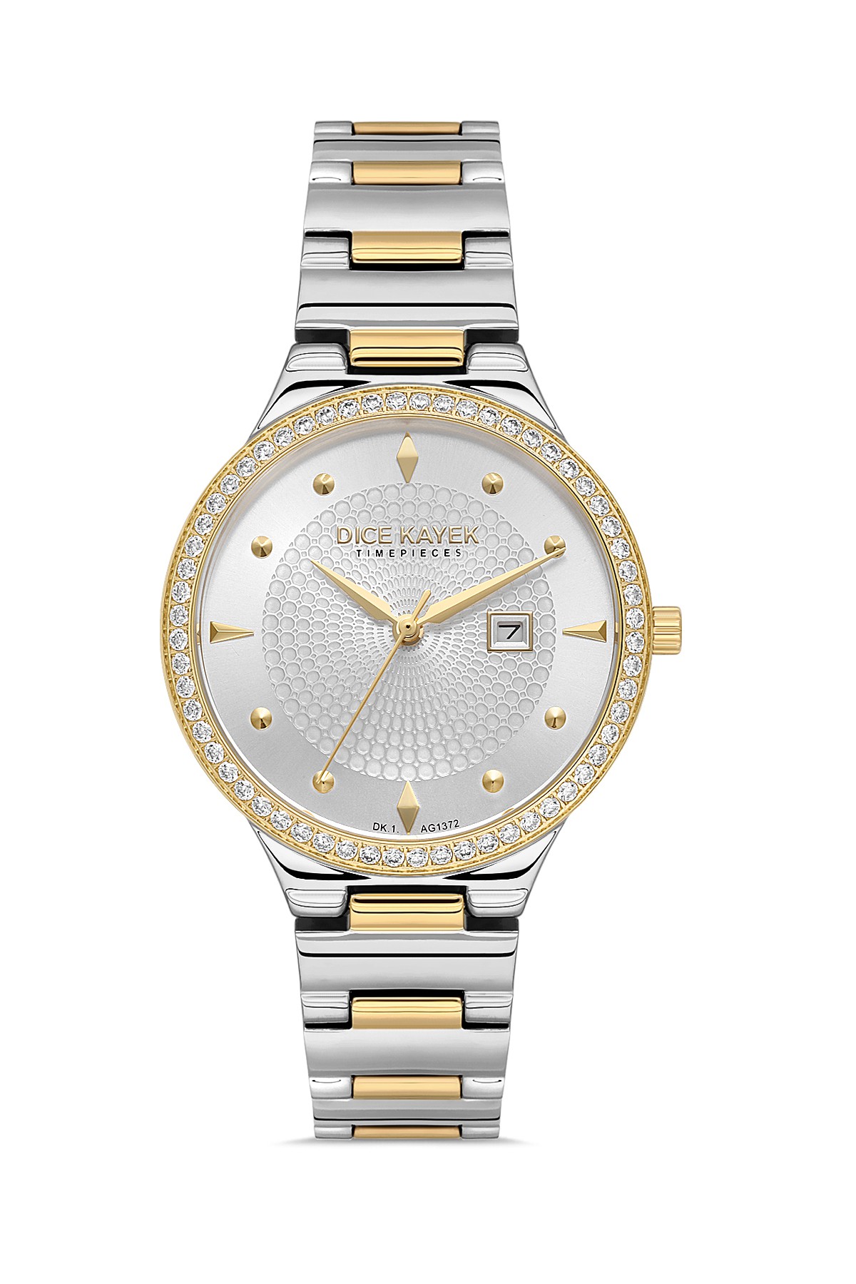 Kadın - Takvi̇mli̇ - Sari Beyaz - Gümüş - Paslanmaz Masi̇f Çeli̇k - 3 Atm - Sertleşti̇ri̇lmi̇ş Mi̇neral Cam - Dice Kayek - 35
