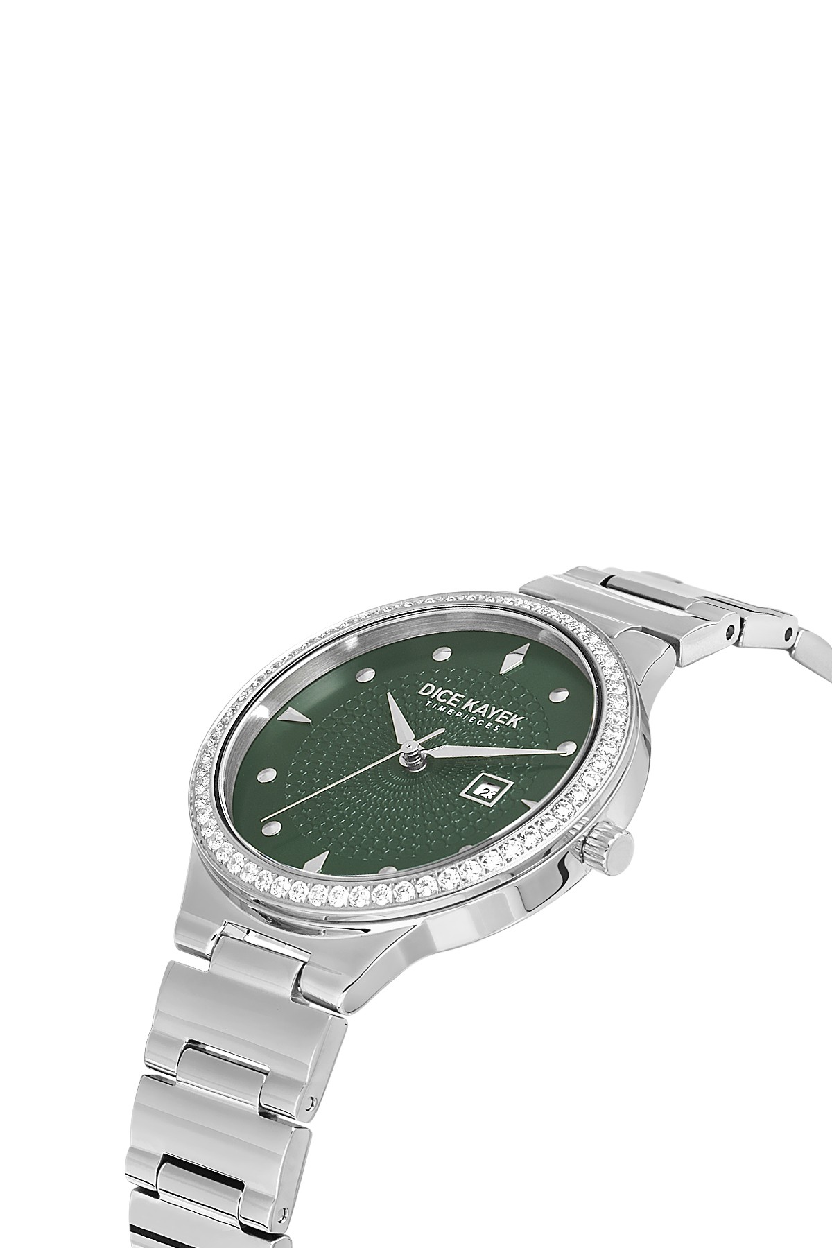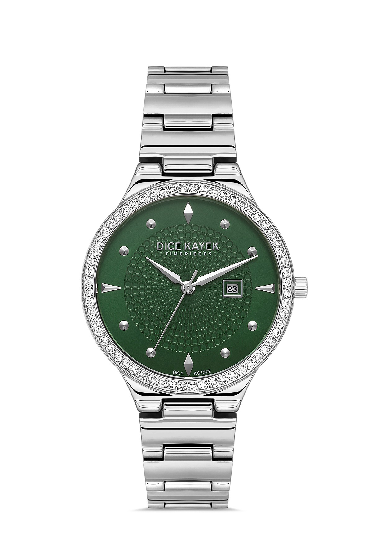 Kadın - Takvi̇mli̇ - Gümüş - Yeşi̇l - Paslanmaz Masi̇f Çeli̇k - 3 Atm - Sertleşti̇ri̇lmi̇ş Mi̇neral Cam - Dice Kayek - 35