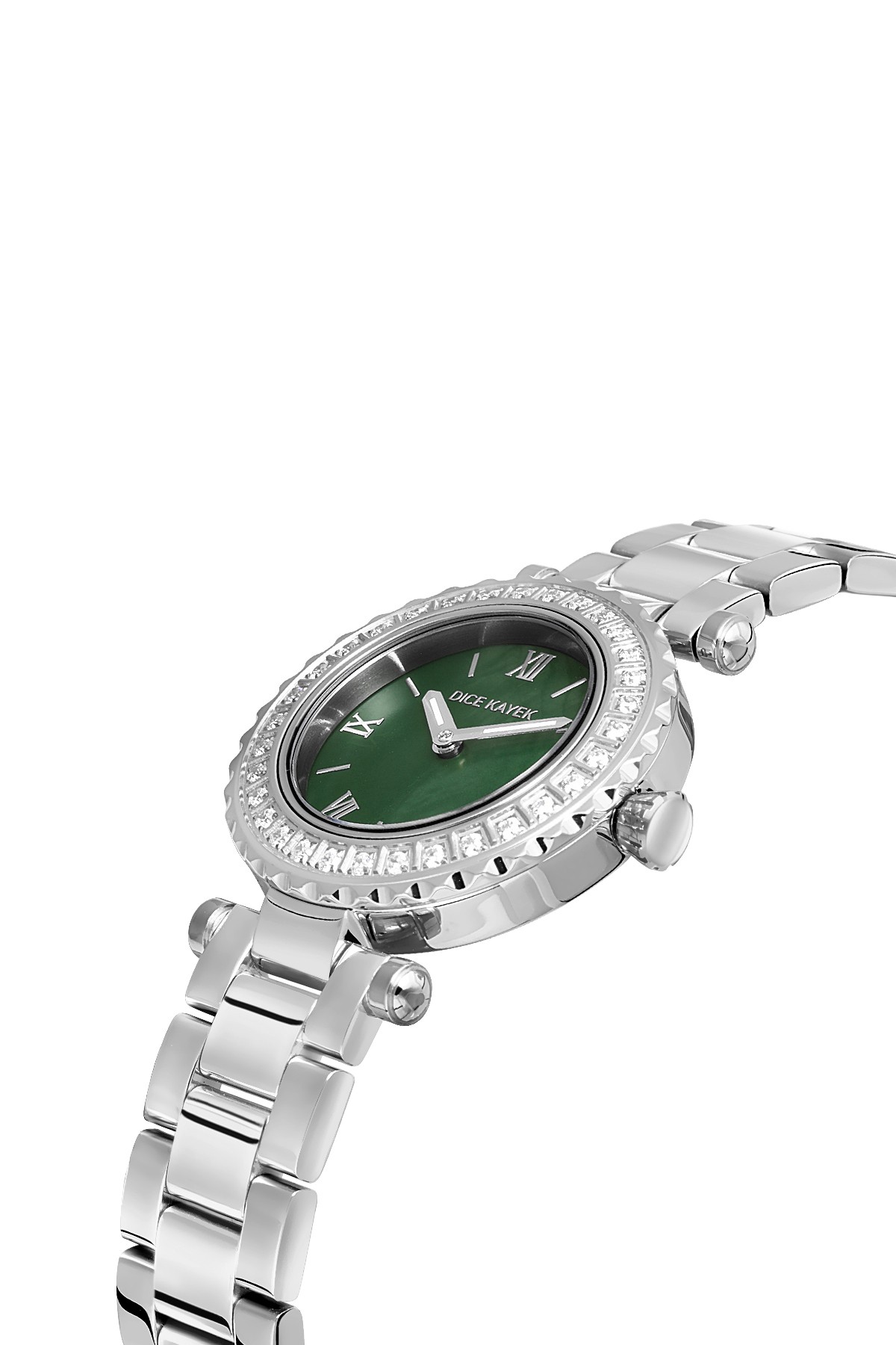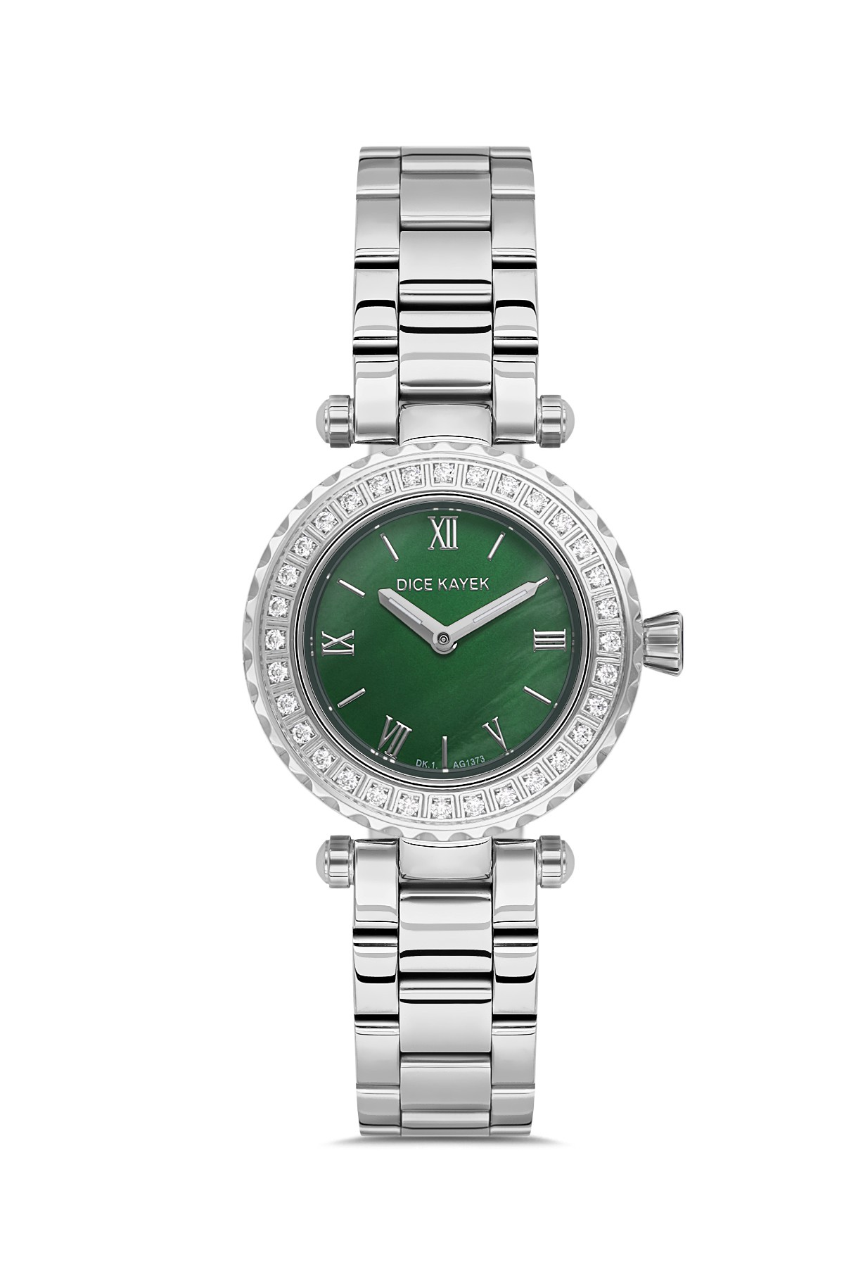 Kadın - Taşli - Gümüş - Yeşi̇l - Paslanmaz Masi̇f Çeli̇k - 3 Atm - Sertleşti̇ri̇lmi̇ş Mi̇neral Cam - Dice Kayek - 29