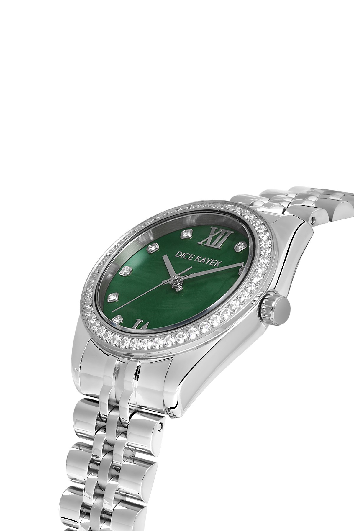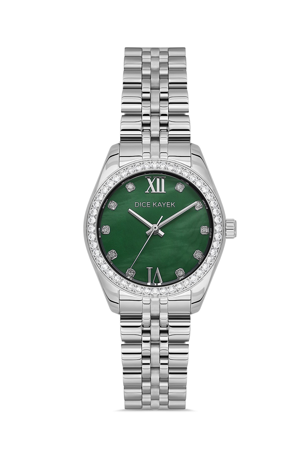 Kadın - Taşli - Gümüş - Yeşi̇l - Paslanmaz Masi̇f Çeli̇k - 3 Atm - Sertleşti̇ri̇lmi̇ş Mi̇neral Cam - Dice Kayek - 32