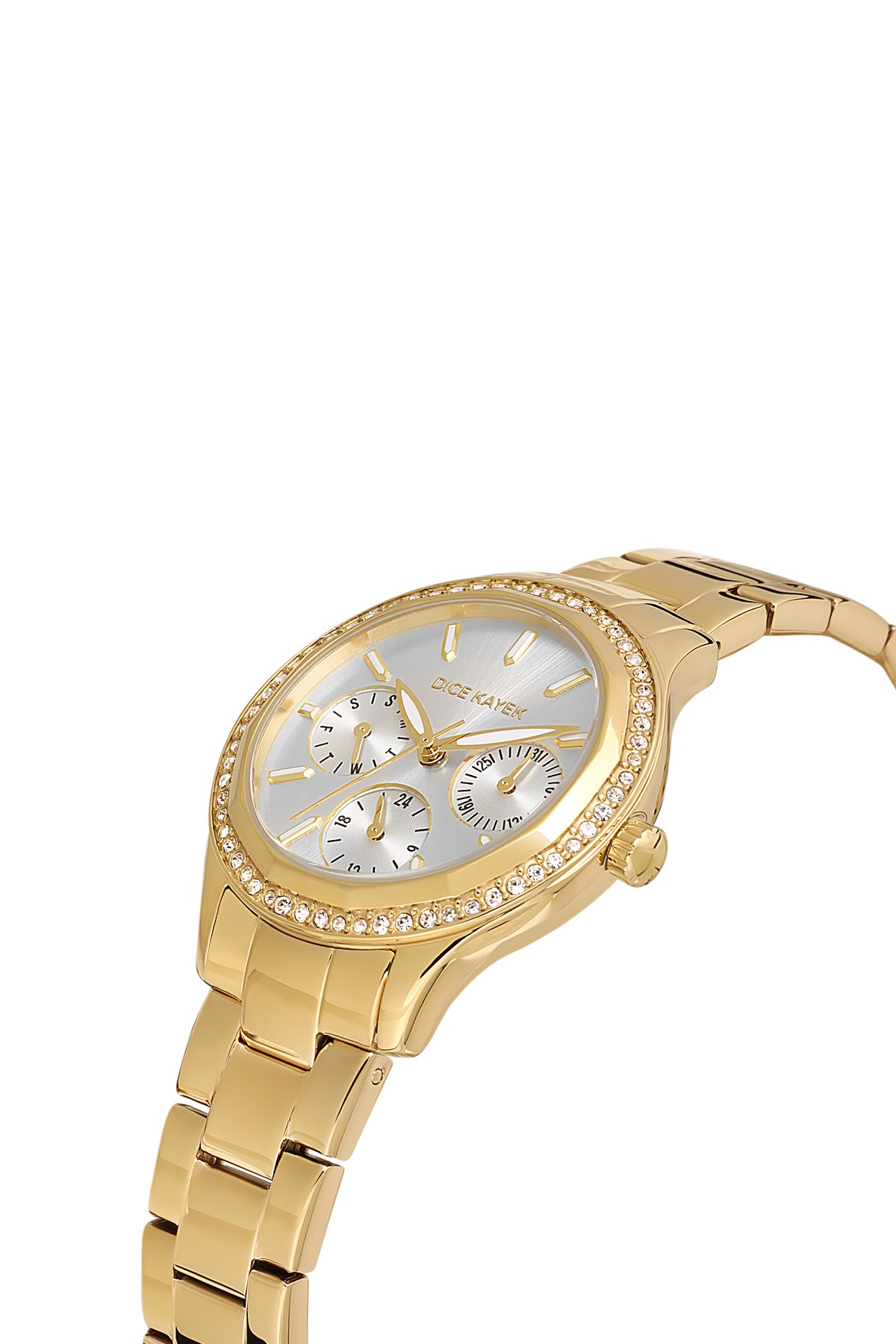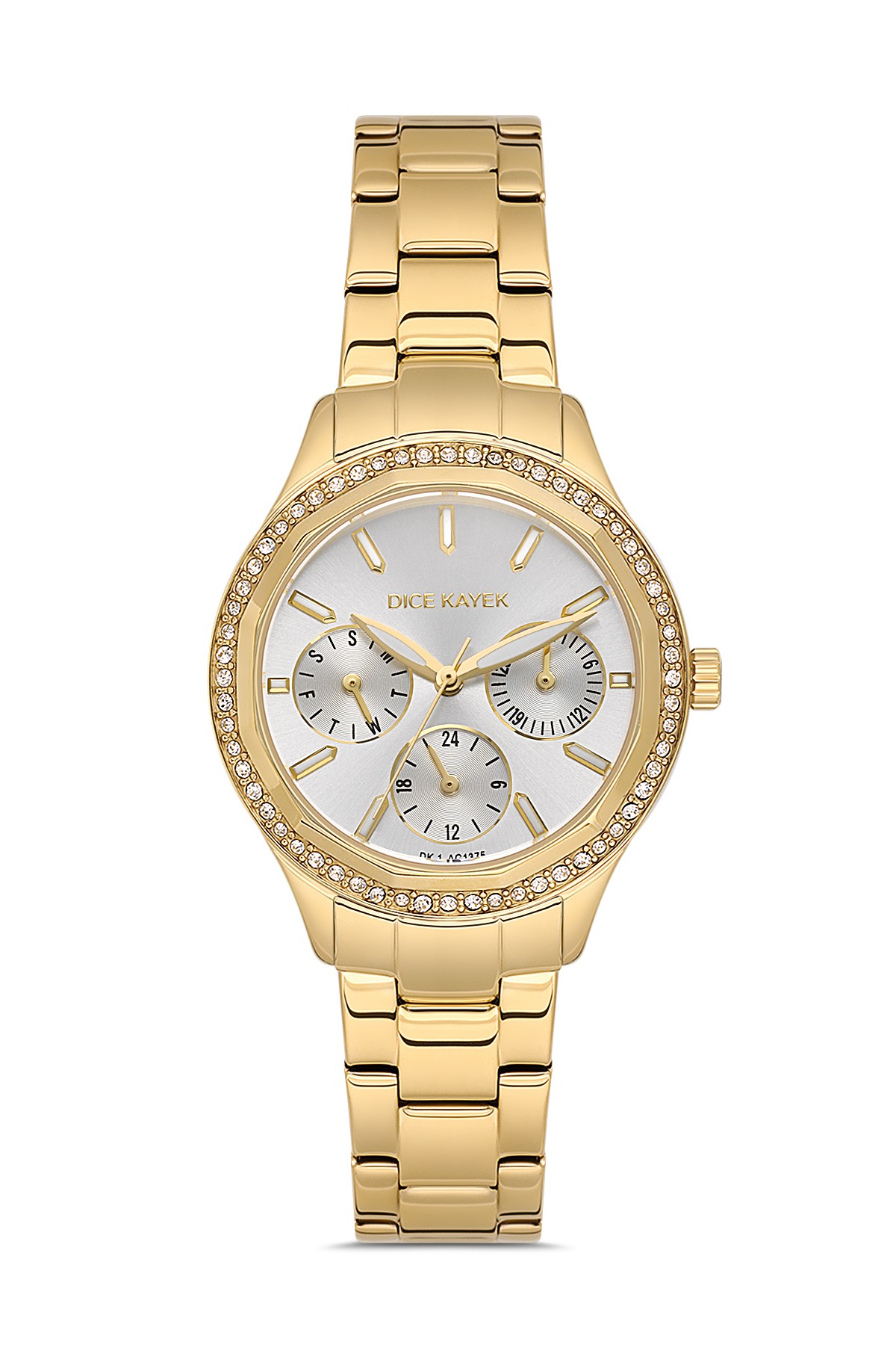 Kadın - Multi̇ Fonksi̇yon - Sari - Gümüş - Paslanmaz Masi̇f Çeli̇k - 3 Atm - Sertleşti̇ri̇lmi̇ş Mi̇neral Cam - Dice Kayek - 34