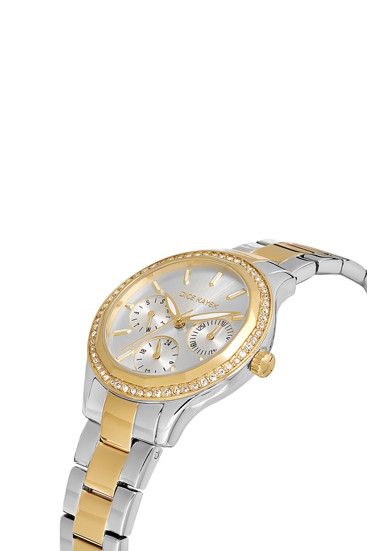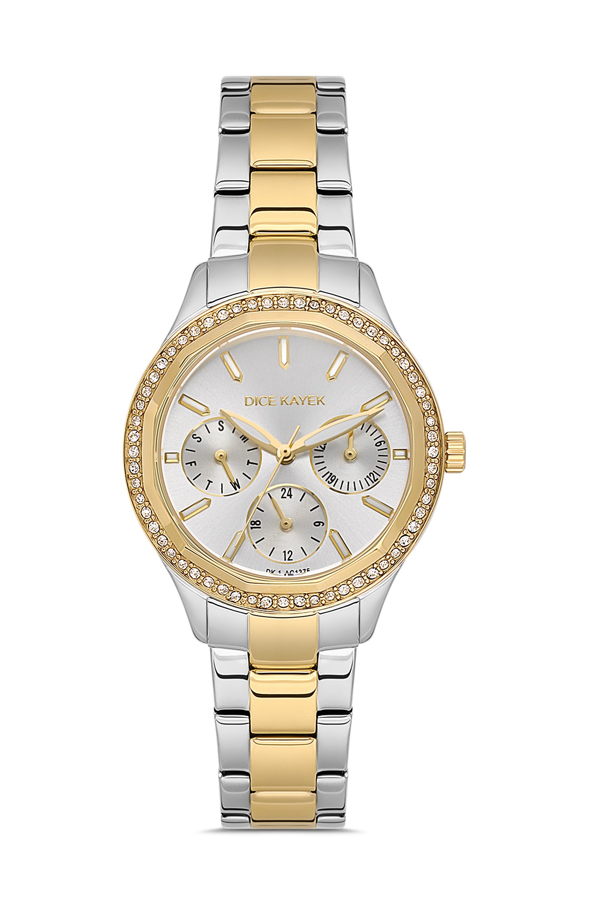 Kadın - Multi̇ Fonksi̇yon - Sari Beyaz - Gümüş - Paslanmaz Masi̇f Çeli̇k - 3 Atm - Sertleşti̇ri̇lmi̇ş Mi̇neral Cam - Dice Kayek - 34