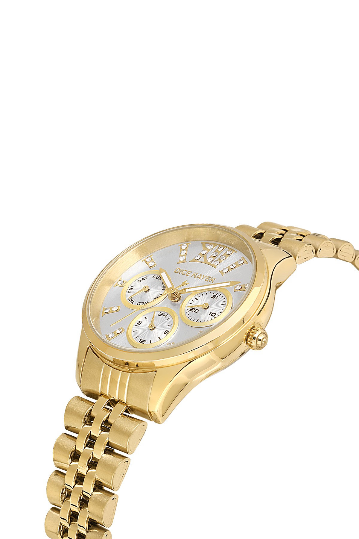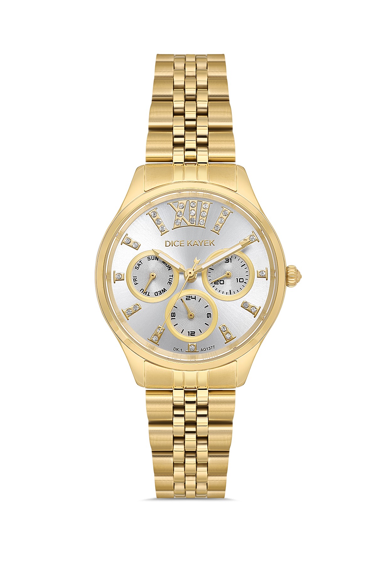 Kadın - Multi̇ Fonksi̇yon - Sari - Gümüş - Paslanmaz Masi̇f Çeli̇k - 3 Atm - Sertleşti̇ri̇lmi̇ş Mi̇neral Cam - Dice Kayek - 34