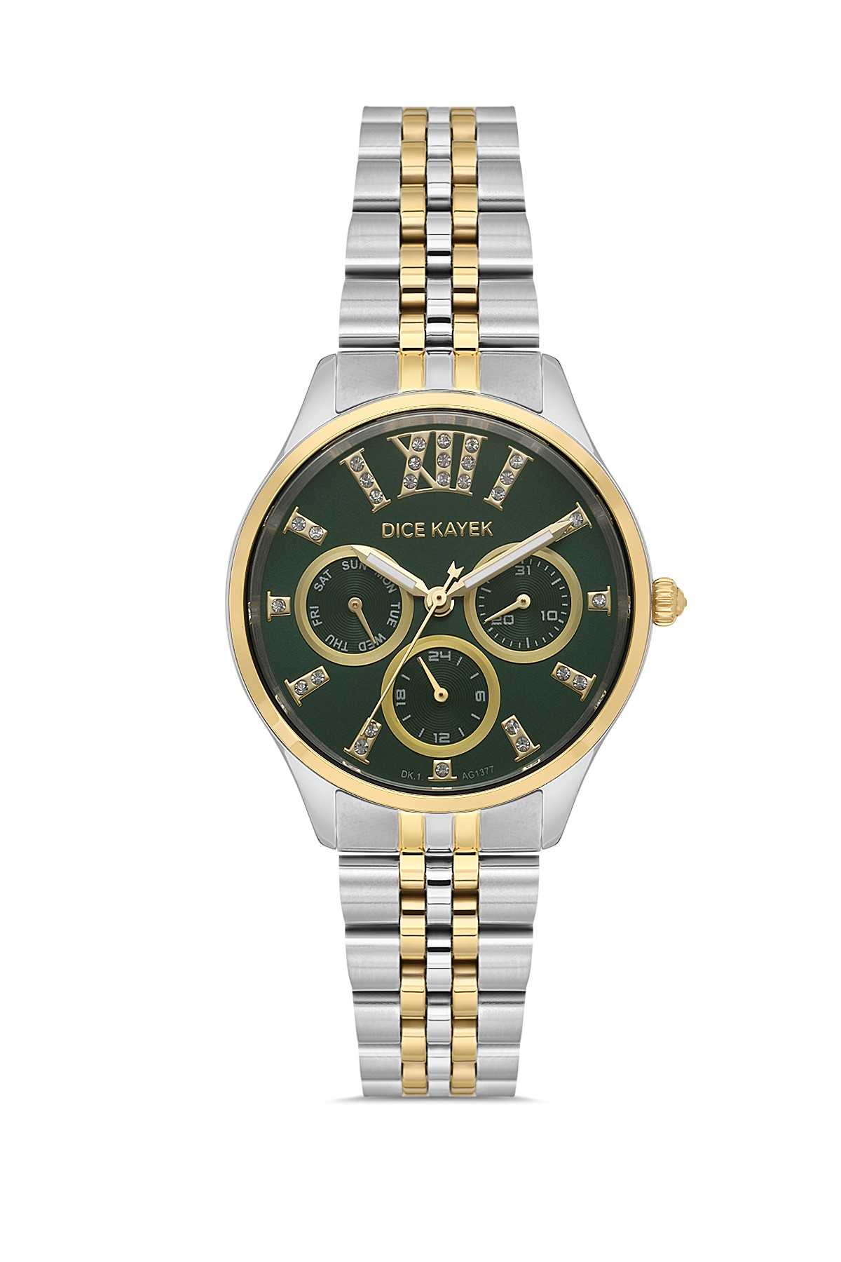 Kadın - Multi̇ Fonksi̇yon - Sari Beyaz - Yeşi̇l - Paslanmaz Masi̇f Çeli̇k - 3 Atm - Sertleşti̇ri̇lmi̇ş Mi̇neral Cam - Dice Kayek - 34