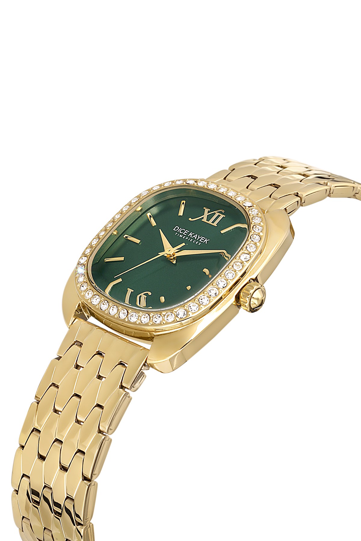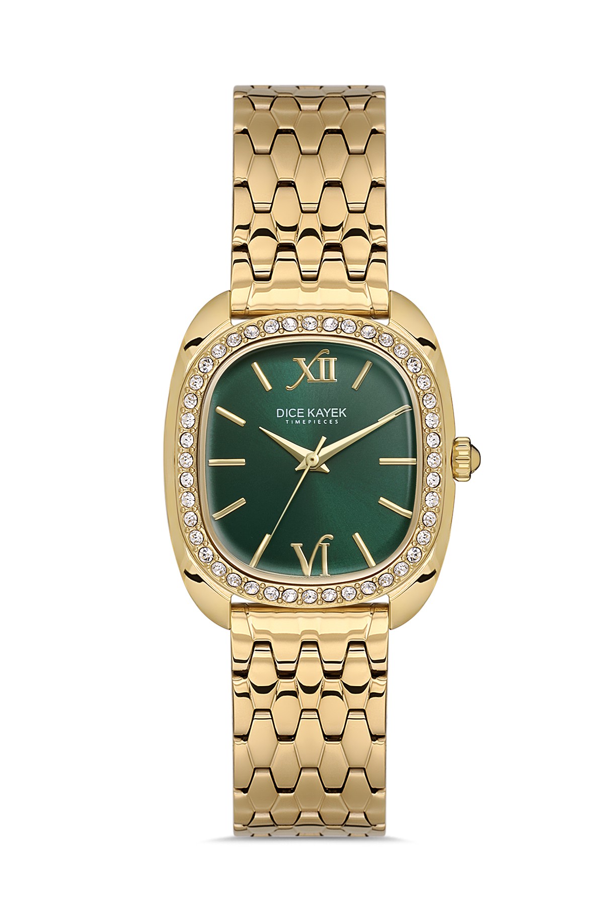 Kadın - Takvi̇mli̇ - Sari - Yeşi̇l - Paslanmaz Masi̇f Çeli̇k - 3 Atm - Sertleşti̇ri̇lmi̇ş Mi̇neral Cam - Dice Kayek - 32