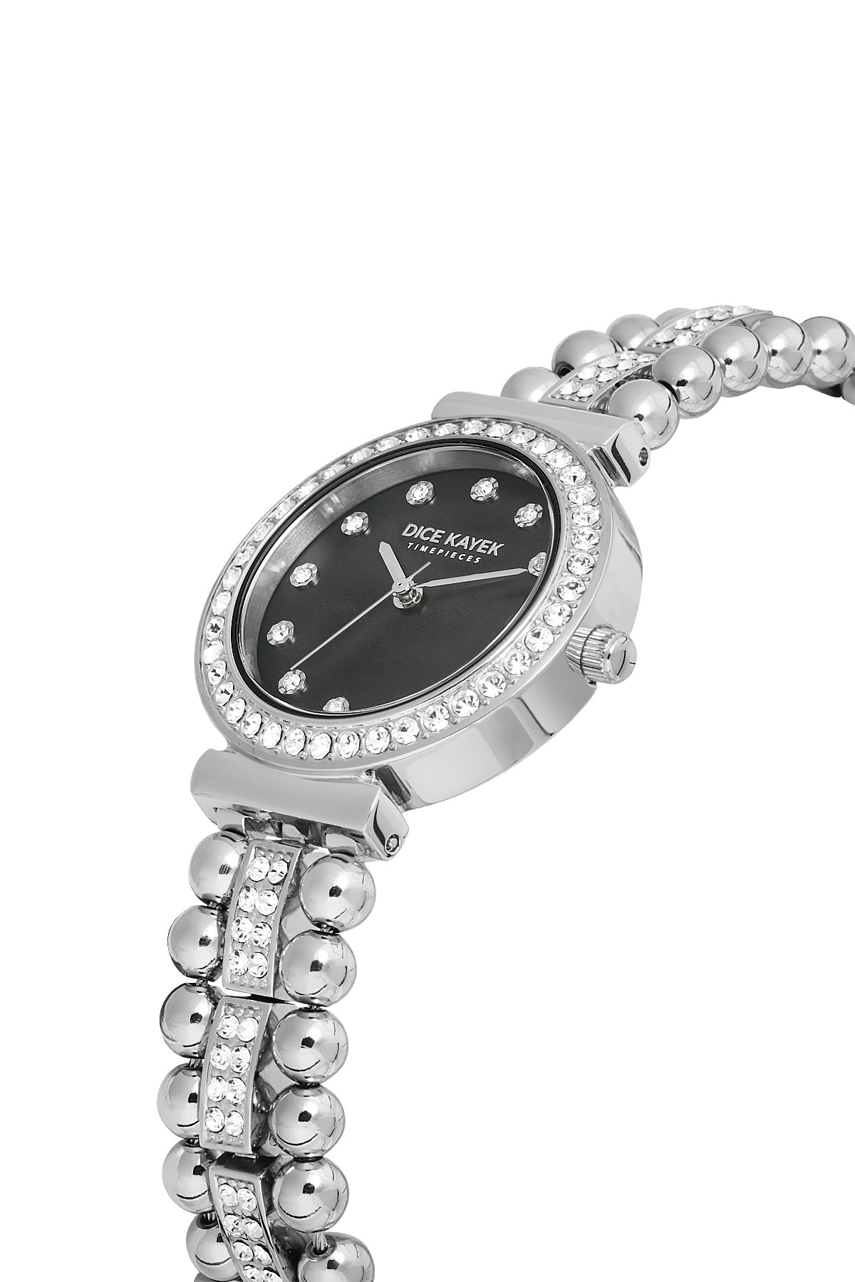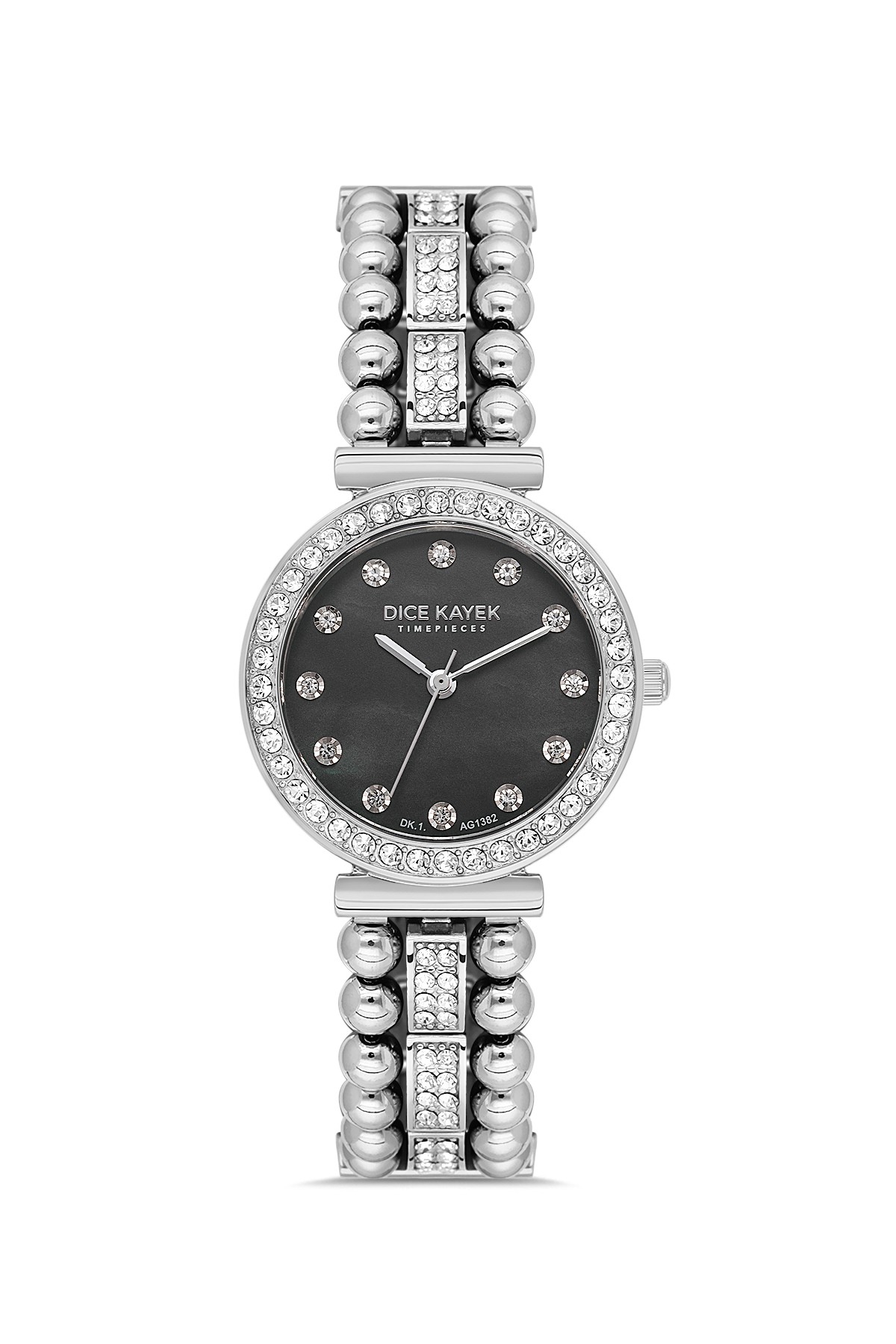 Kadın - Taşli - Gümüş - Si̇yah - Paslanmaz Masi̇f Çeli̇k - 3 Atm - Sertleşti̇ri̇lmi̇ş Mi̇neral Cam - Dice Kayek - 30