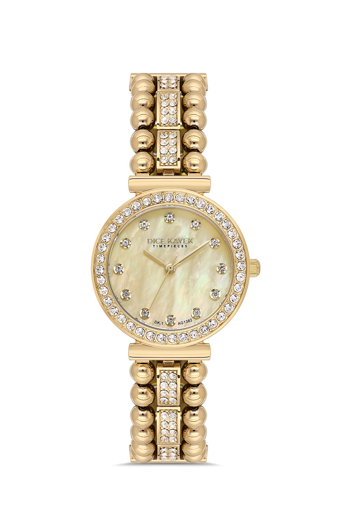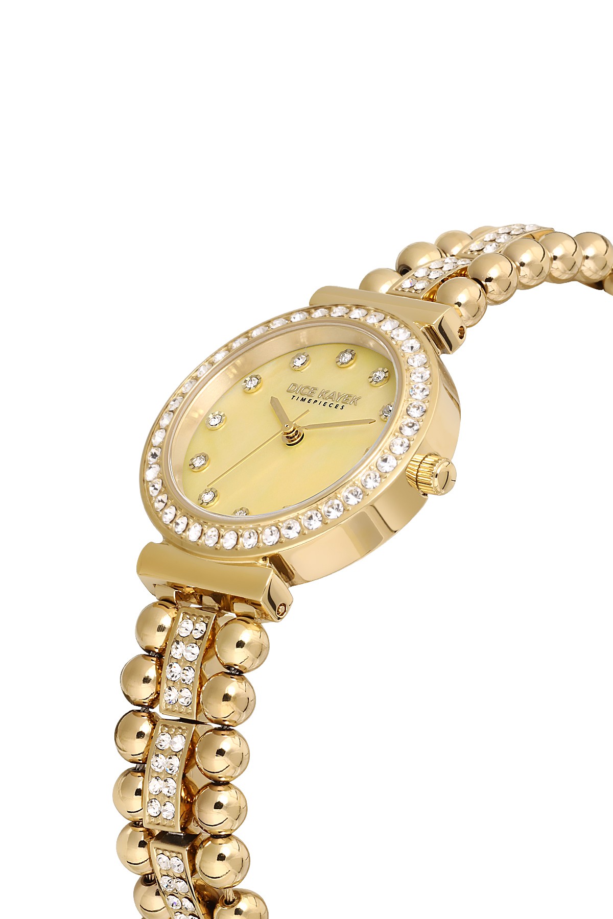 Kadın - Taşli - Sari - Sari - Paslanmaz Masi̇f Çeli̇k - 3 Atm - Sertleşti̇ri̇lmi̇ş Mi̇neral Cam - Dice Kayek - 30