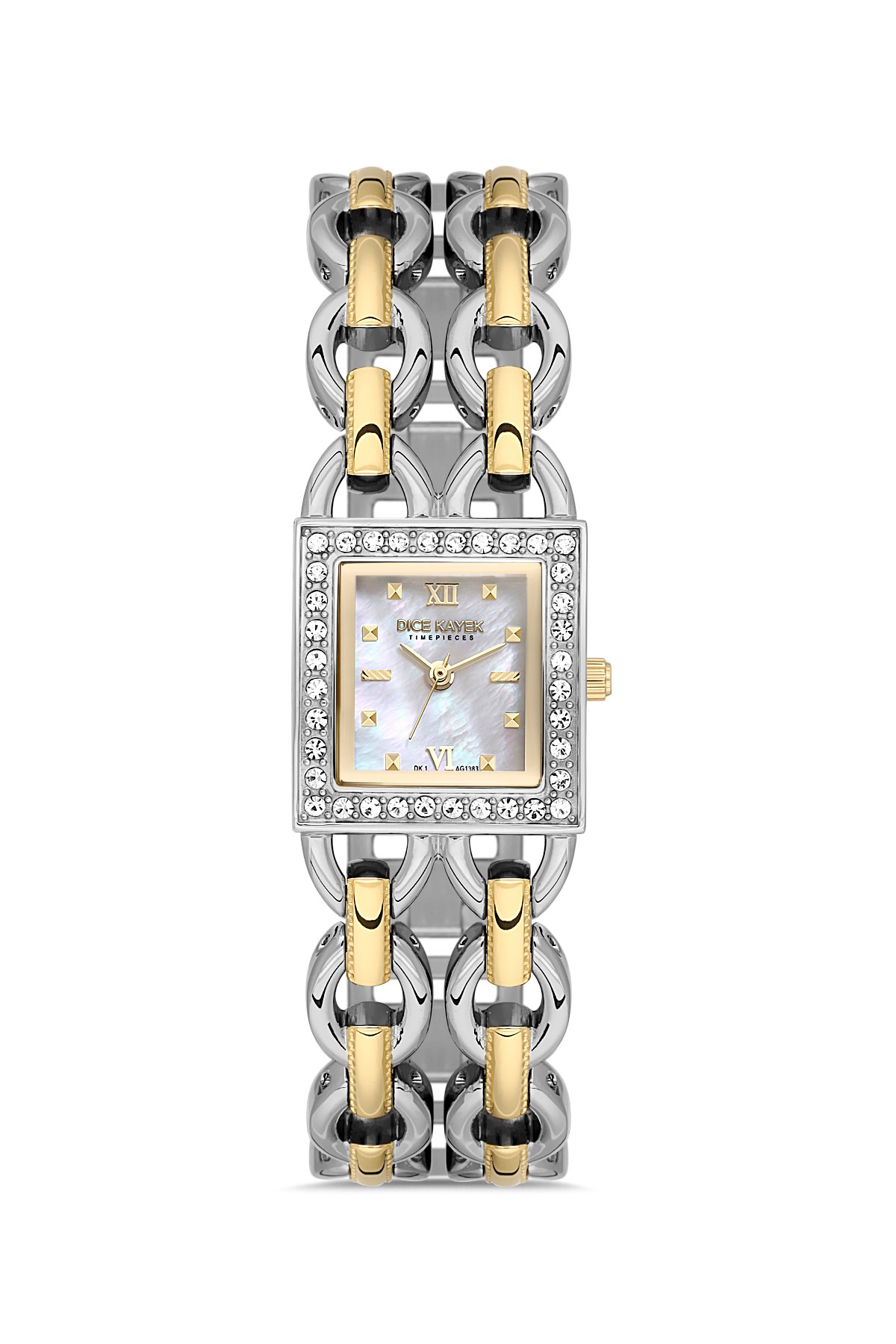 Kadın - Taşli - Sari Beyaz - Gümüş - Paslanmaz Masi̇f Çeli̇k - 3 Atm - Sertleşti̇ri̇lmi̇ş Mi̇neral Cam - Dice Kayek - 21*22