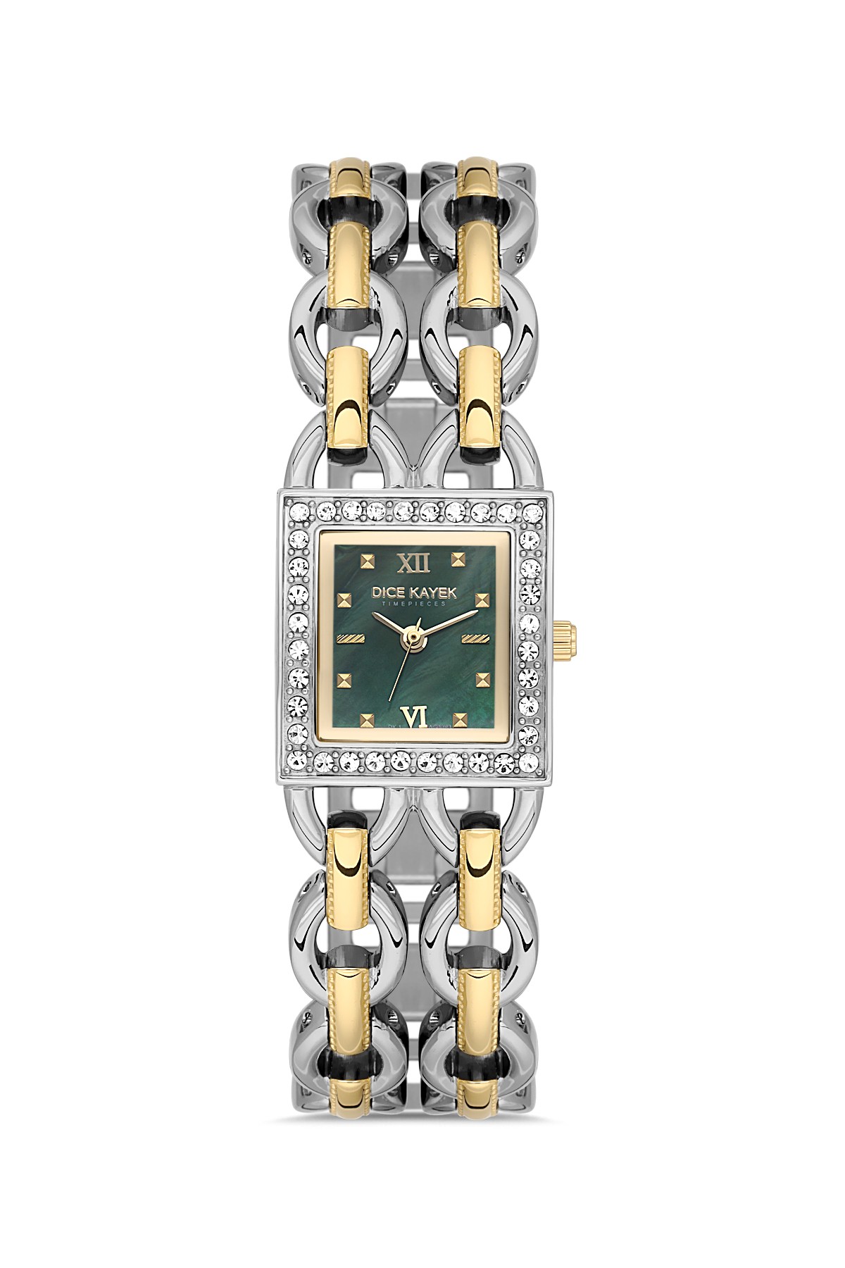 Kadın - Taşli - Sari Beyaz - Yeşi̇l - Paslanmaz Masi̇f Çeli̇k - 3 Atm - Sertleşti̇ri̇lmi̇ş Mi̇neral Cam - Dice Kayek - 21*22
