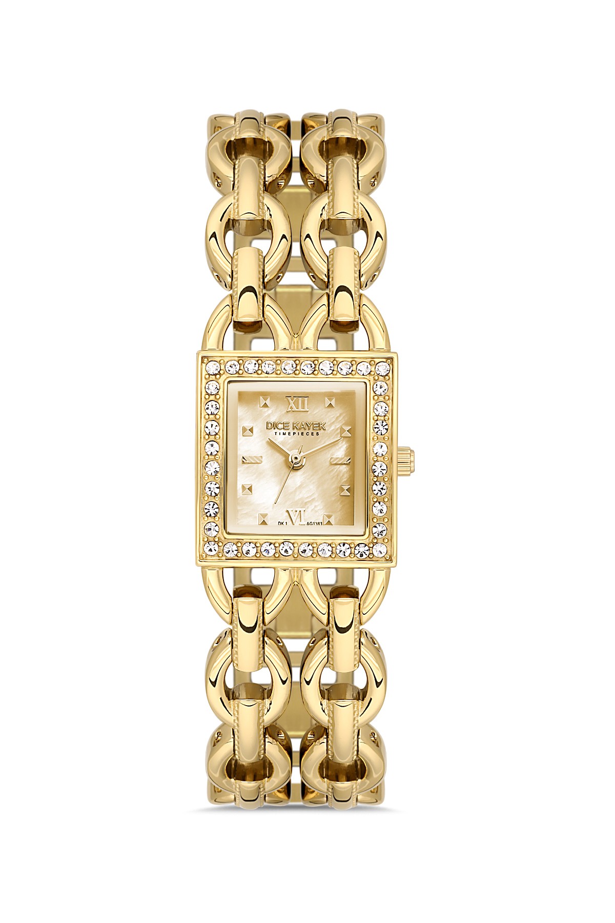 Kadın - Taşli - Sari - Sari - Paslanmaz Masi̇f Çeli̇k - 3 Atm - Sertleşti̇ri̇lmi̇ş Mi̇neral Cam - Dice Kayek - 21*22